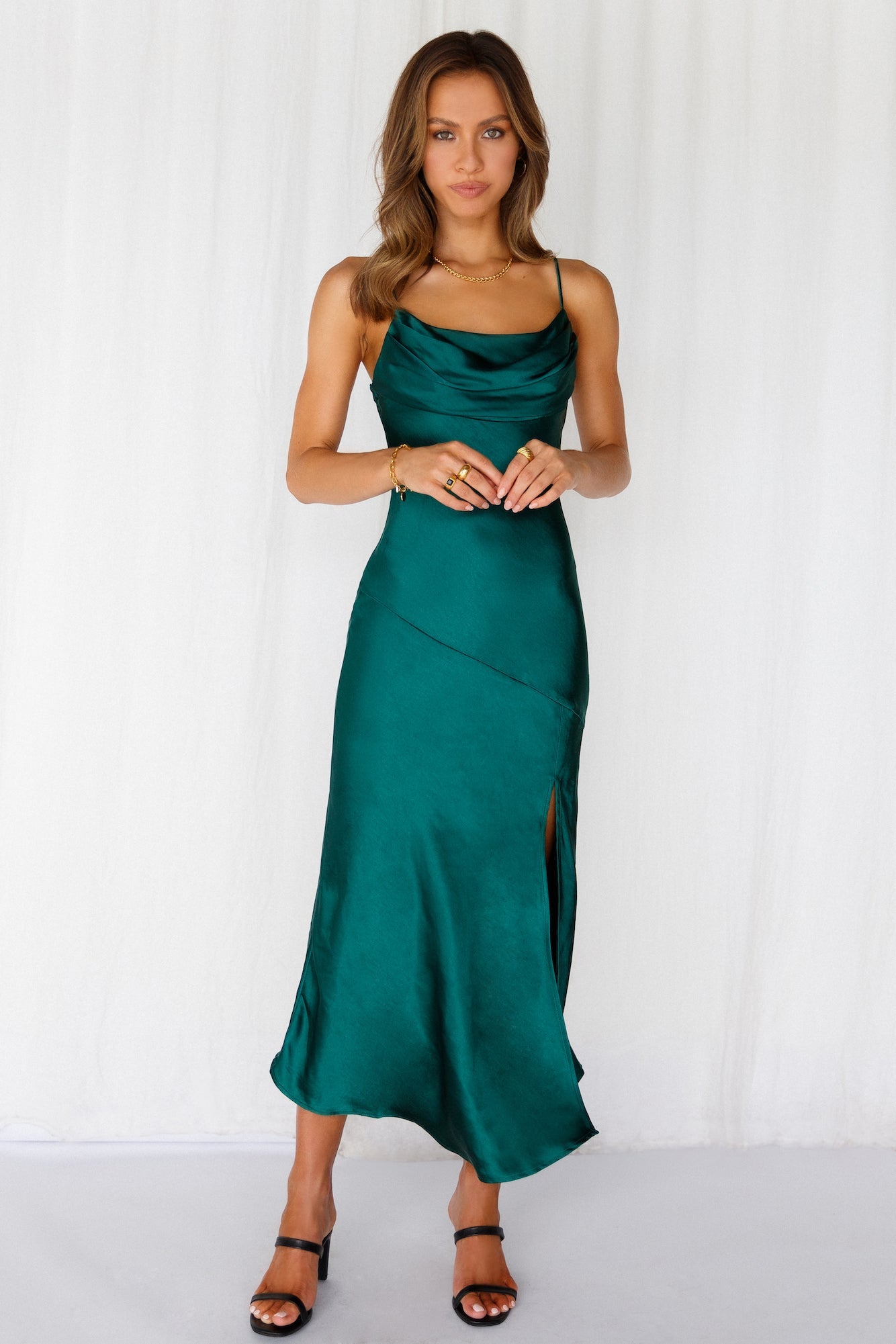 Lychee Martini Satin Midi Dress Forest Green