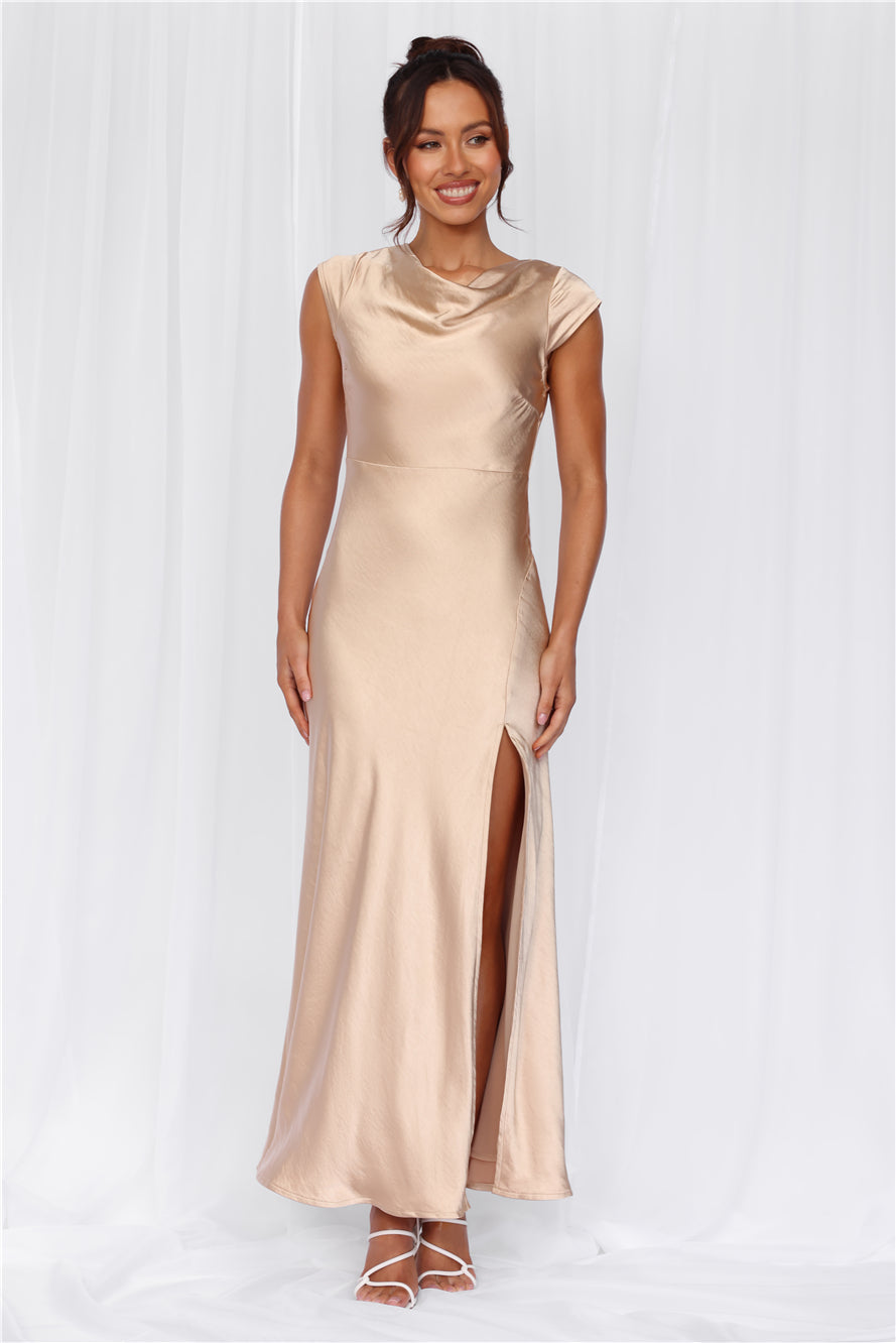 HELLO MOLLY The Valentina Cap Sleeve Satin Maxi Dress Champagne