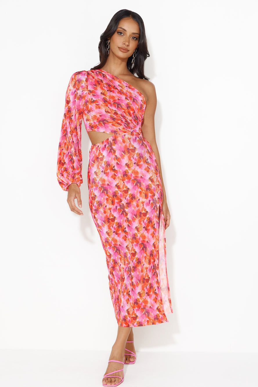 Super Yacht Summer One Shoulder Midi Dress Rose
