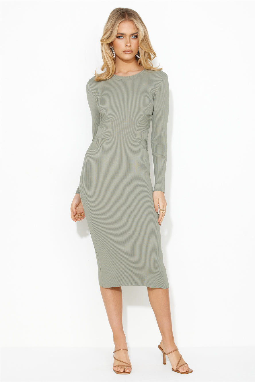 Night Owl Long Sleeve Ribbed Midi Dress Grey