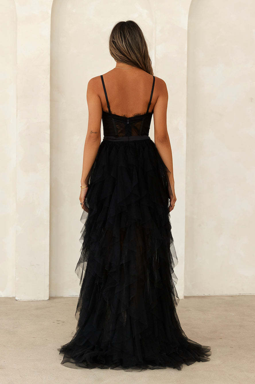 Girl. it's time to level up your wardrobe. Make all heads turn when you walk into the room with the Elegantly Dressed Maxi Dress. With its tulle feature and sweetheart neckline. you will make an unforgettable entrance. Style with heels and curls.