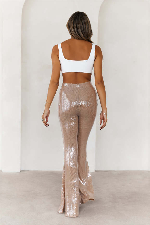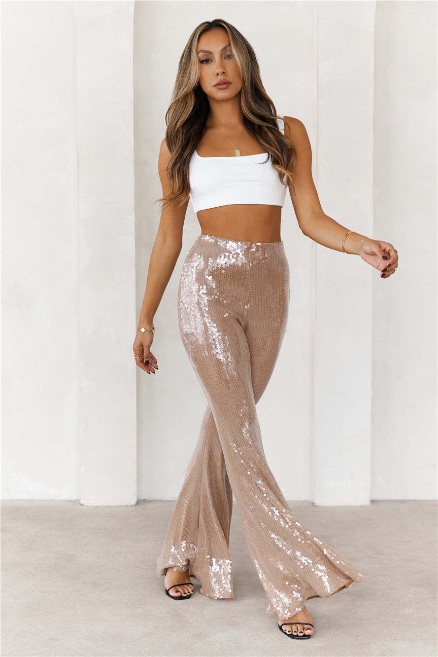 Lovely. it's time to party in the Grooving Sequin Wide Leg Pants. Featuring sparkly. clear sequins and a statement wide-leg design. Style with a corset and heels for all the attention.