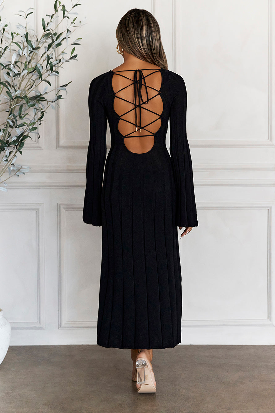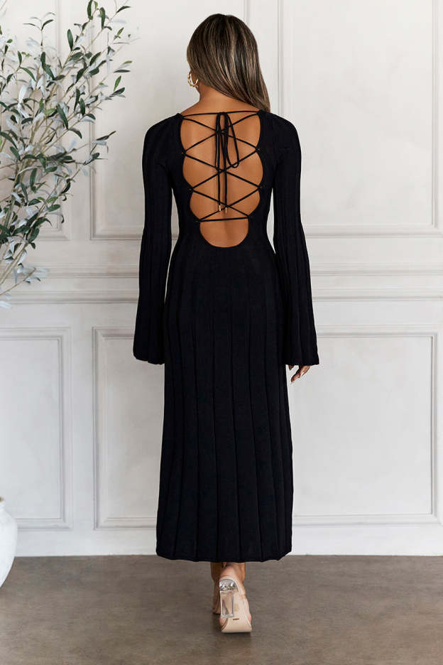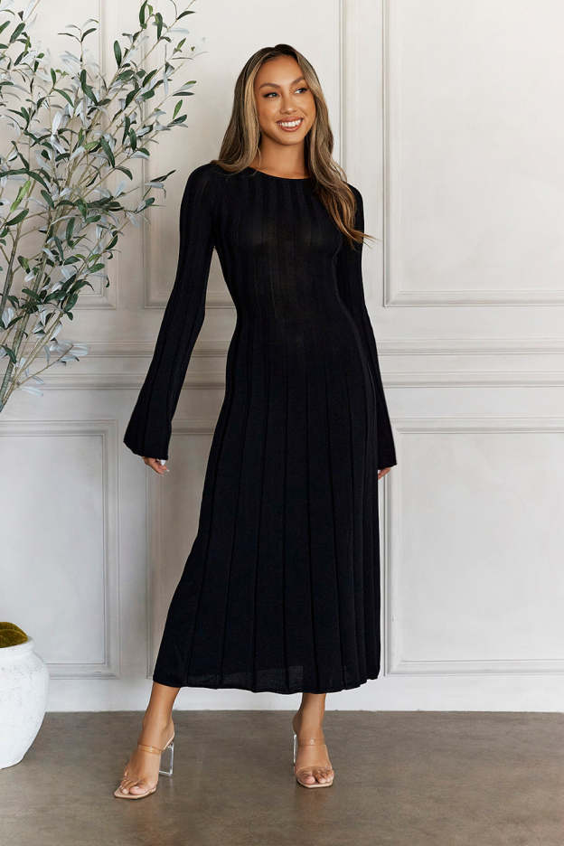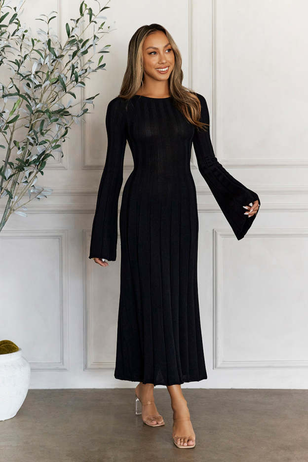 HELLO MOLLY Creating Icons Ribbed Long Sleeve Midi Dress Black