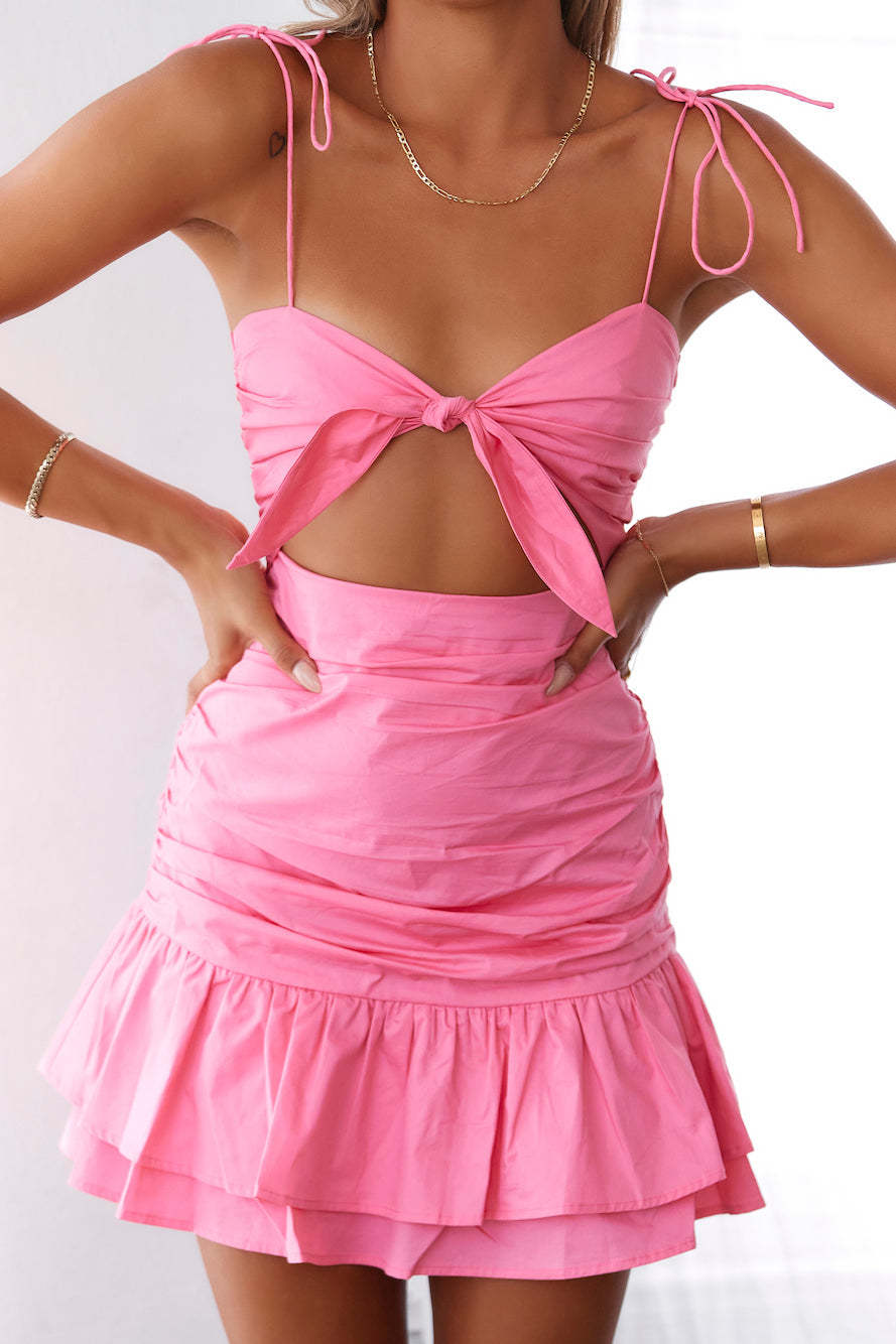We feel major summery vibes from this piece. A few drinks on the beach anyone? The No More Tears Dress has spaghetti straps with a cut-out below the bust and ruching all over! Pair yours with some tanned wedges and some sunnies.