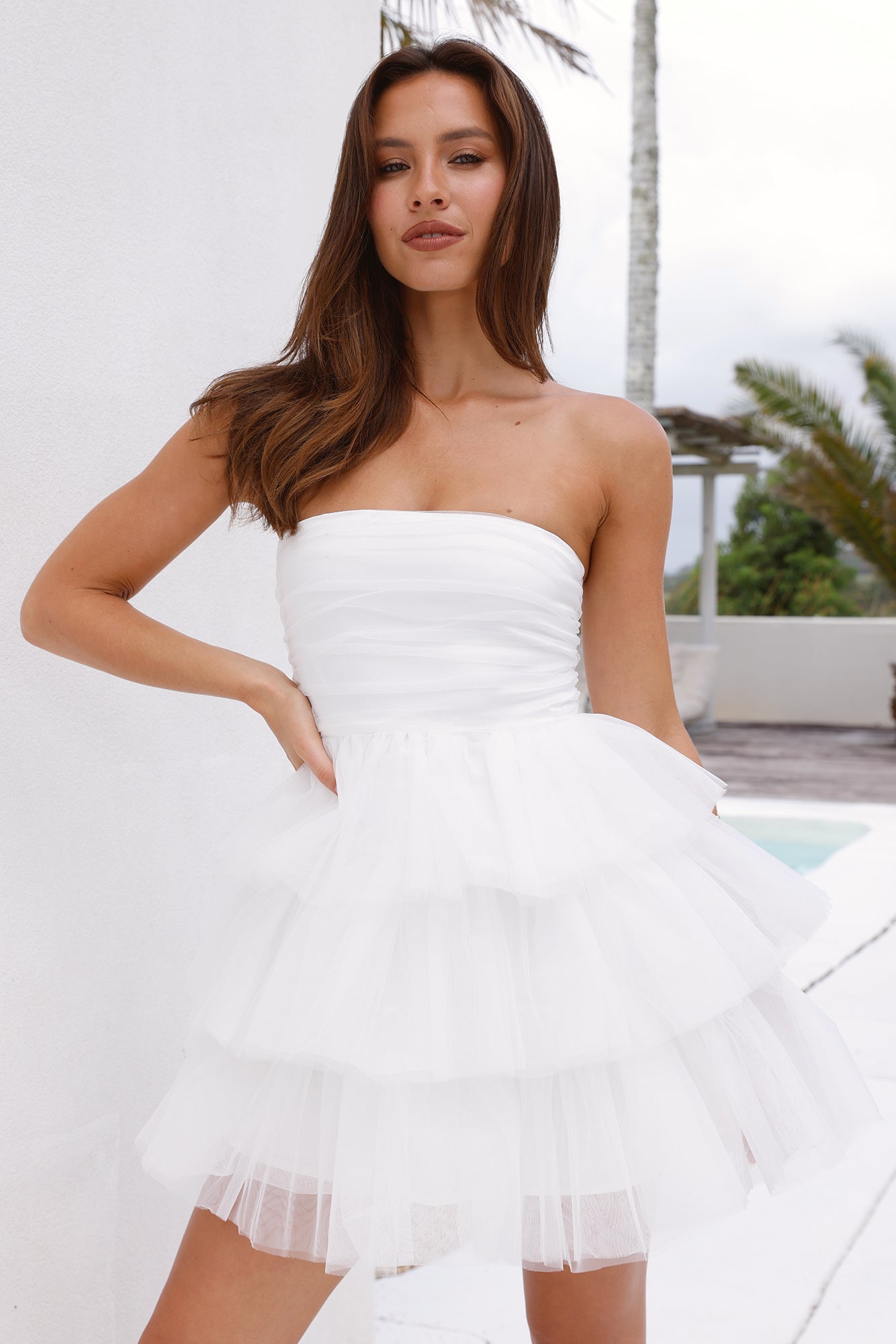 All eyes on you! The HELLO MOLLY Secret Soirée Tulle Strapless Mini Dress features a voluminous tiered frill skirt and a gathered bodice. Style with heels and get ready to turn heads.