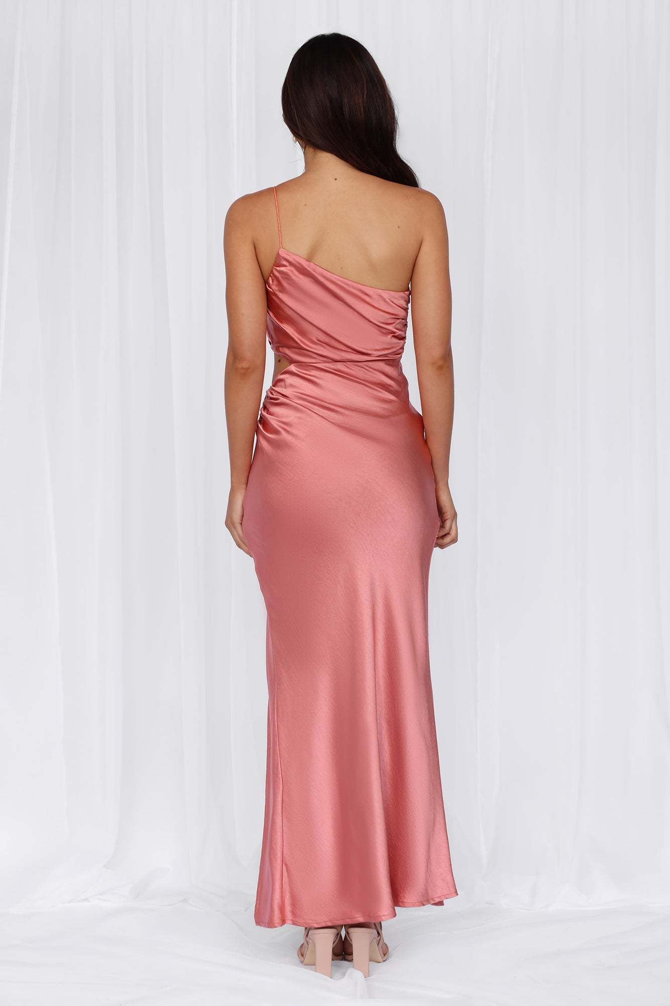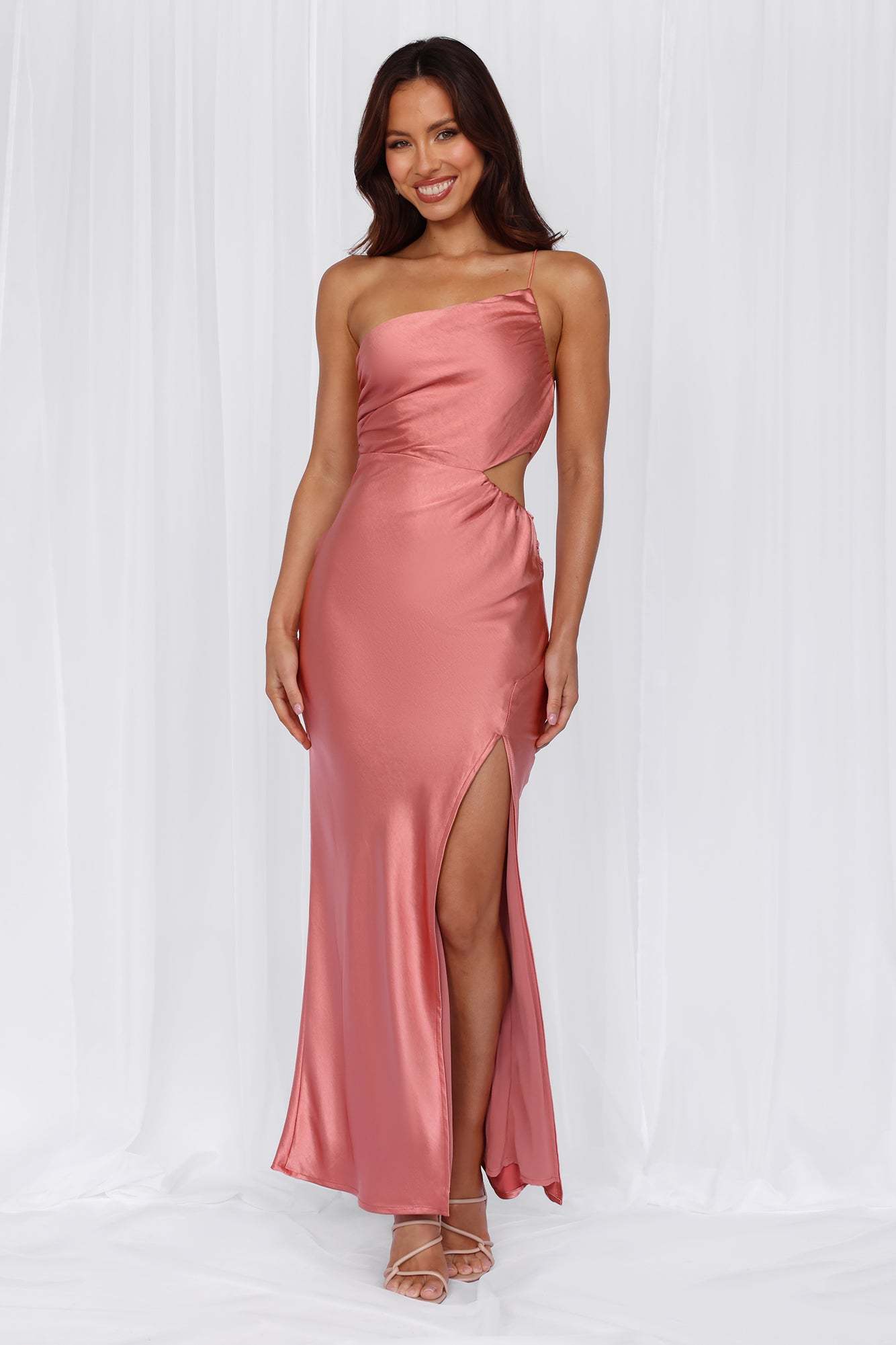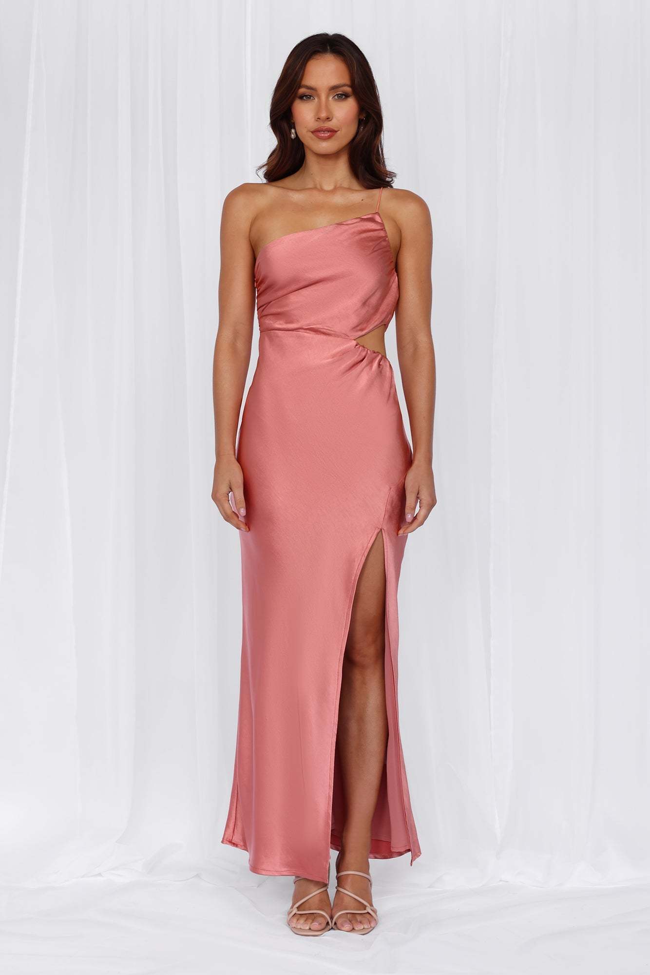HELLO MOLLY The Opal One Shoulder Satin Maxi Dress Rose