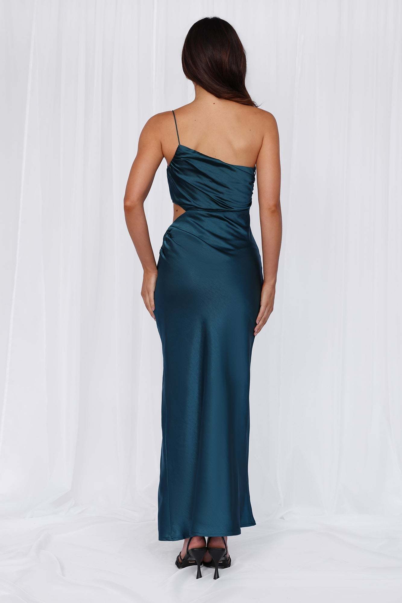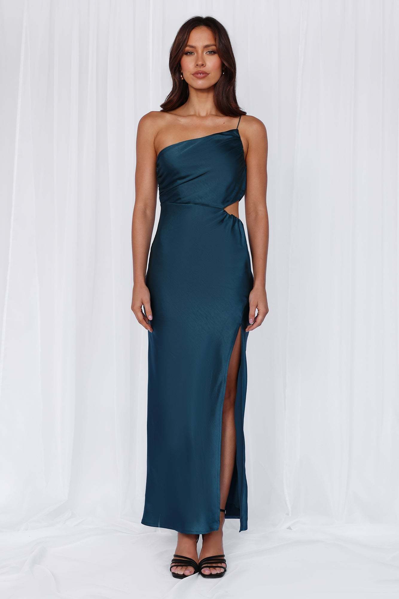 HELLO MOLLY The Opal One Shoulder Satin Maxi Dress Teal