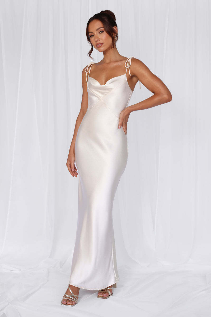 HELLO MOLLY The Penelope Cowl Satin Maxi Dress Pearl