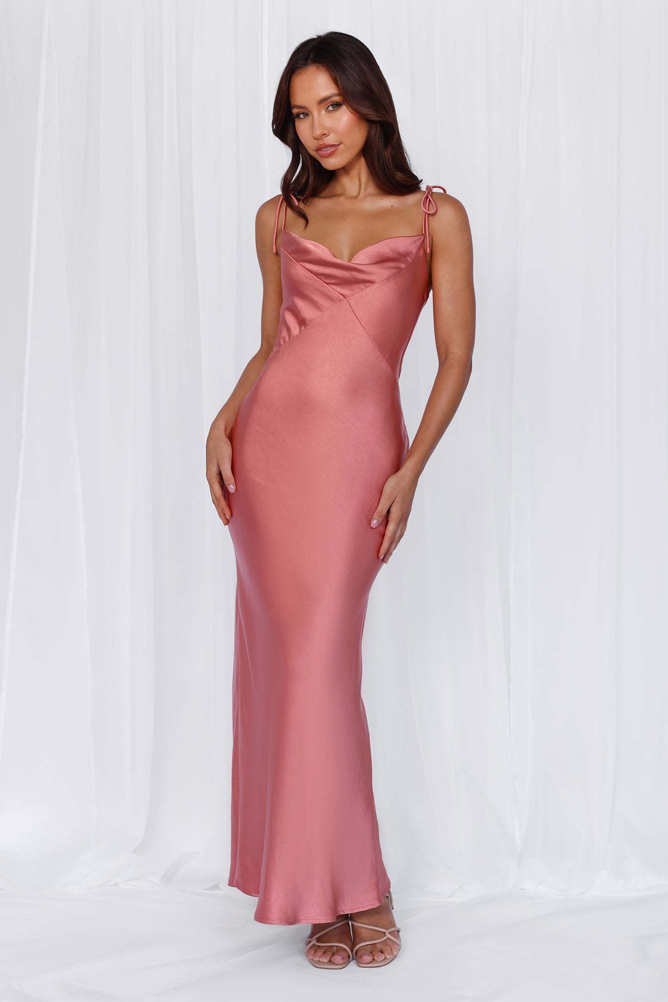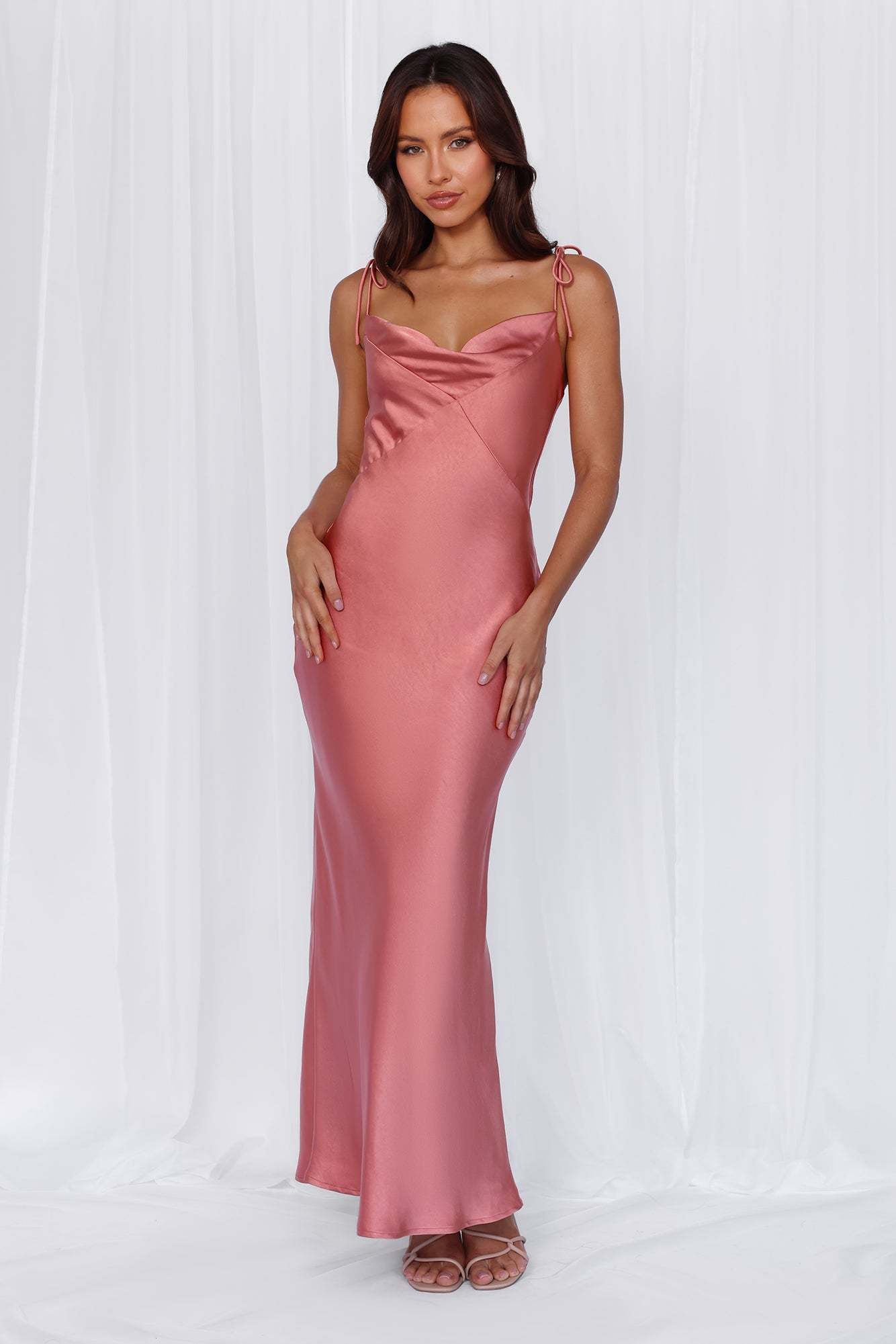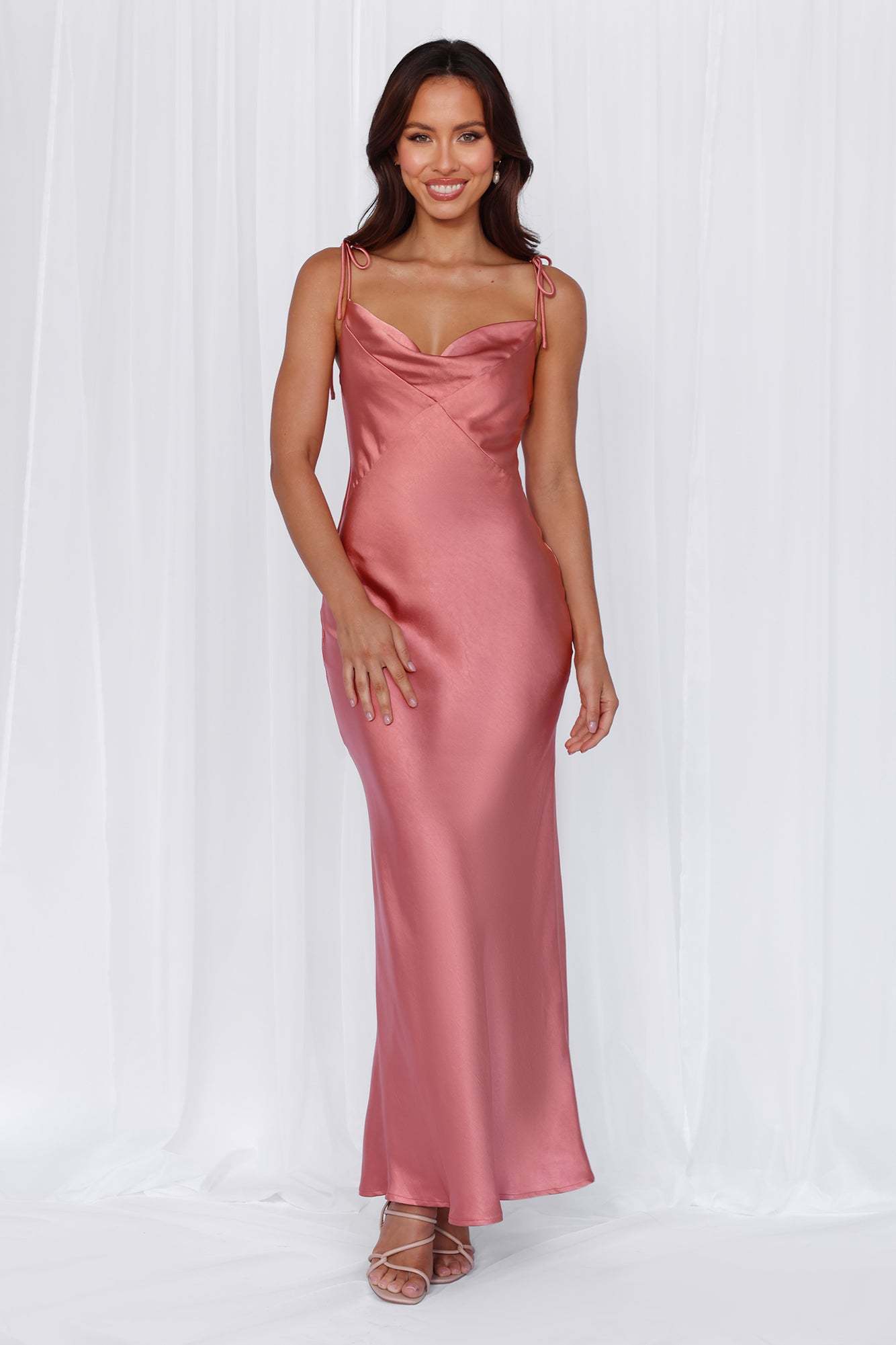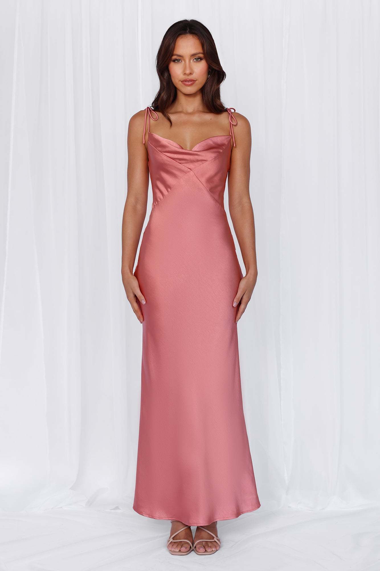 HELLO MOLLY The Penelope Cowl Satin Maxi Dress Rose