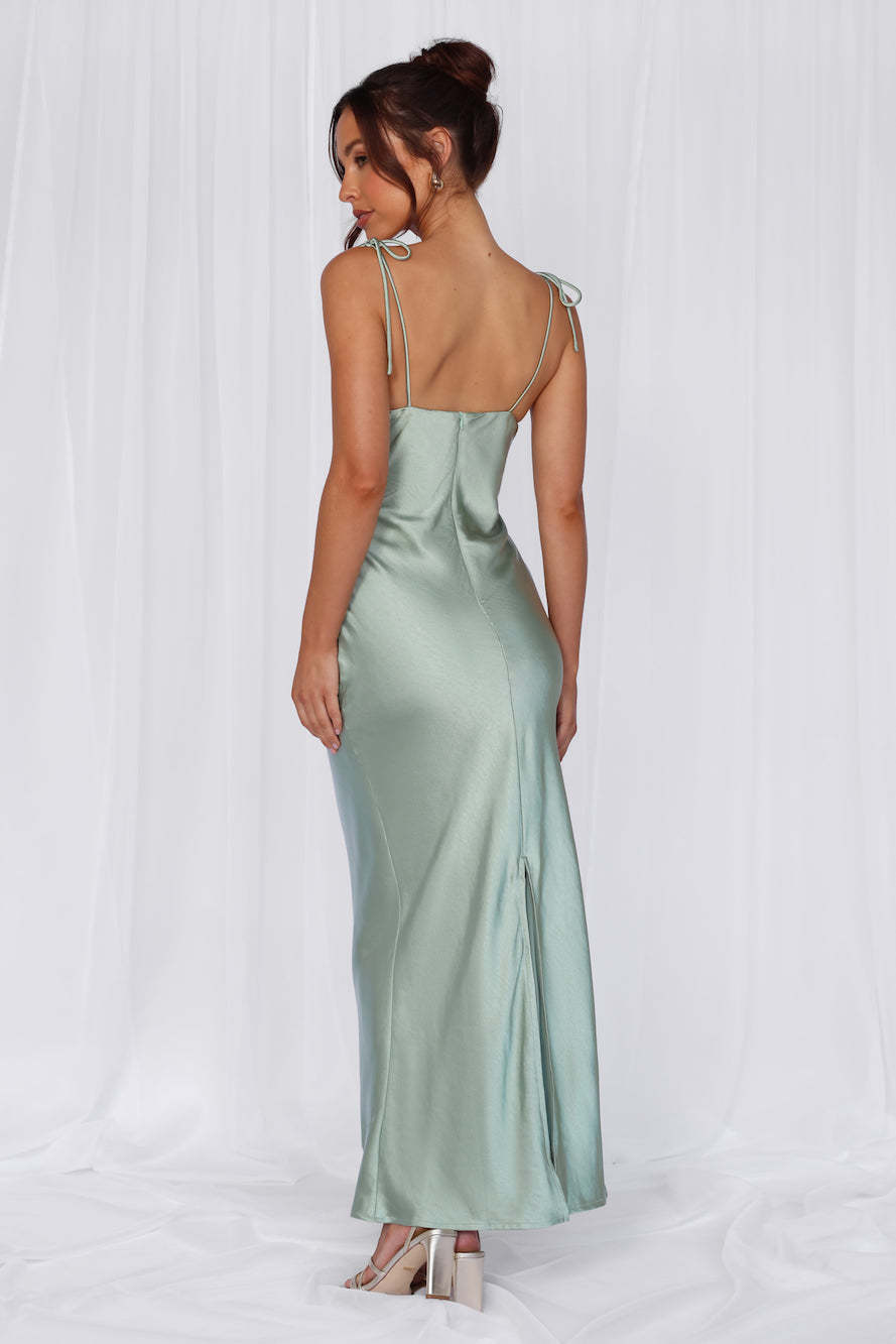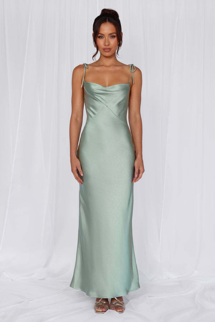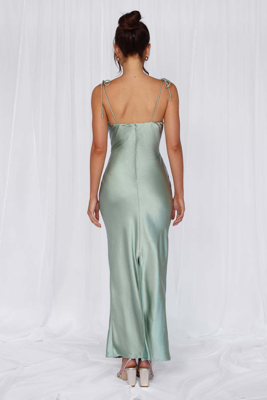 HELLO MOLLY The Penelope Cowl Satin Maxi Dress Sage