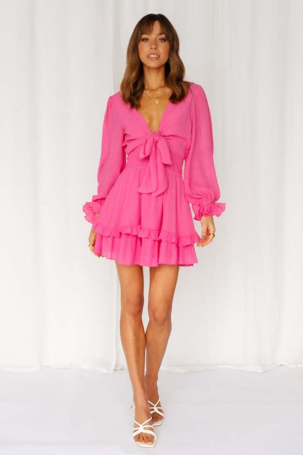 Bored of your party-edit? Then you are definitely going to love our Lost Somebody Dress. We're getting ALL the likes with the garment's adjustable tie-up front. cinch shirred waist and flared ruffle hemline. Don't forget to layer like a player with some bling!!