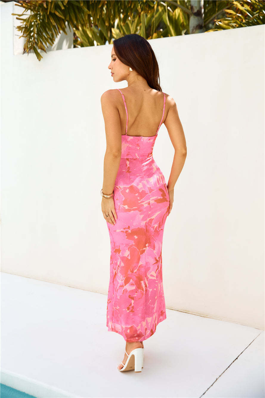 Lovely. this is a 'fit that will have all the attention on you! The Love Bubble Mesh Maxi Dress features a cutout to the hip. a cowl neckline and a gorgeous print. Style with heels for the best pics'.