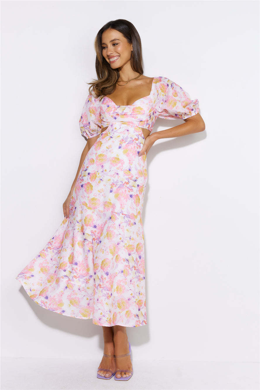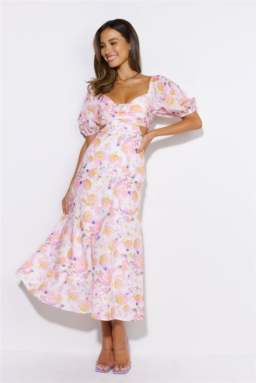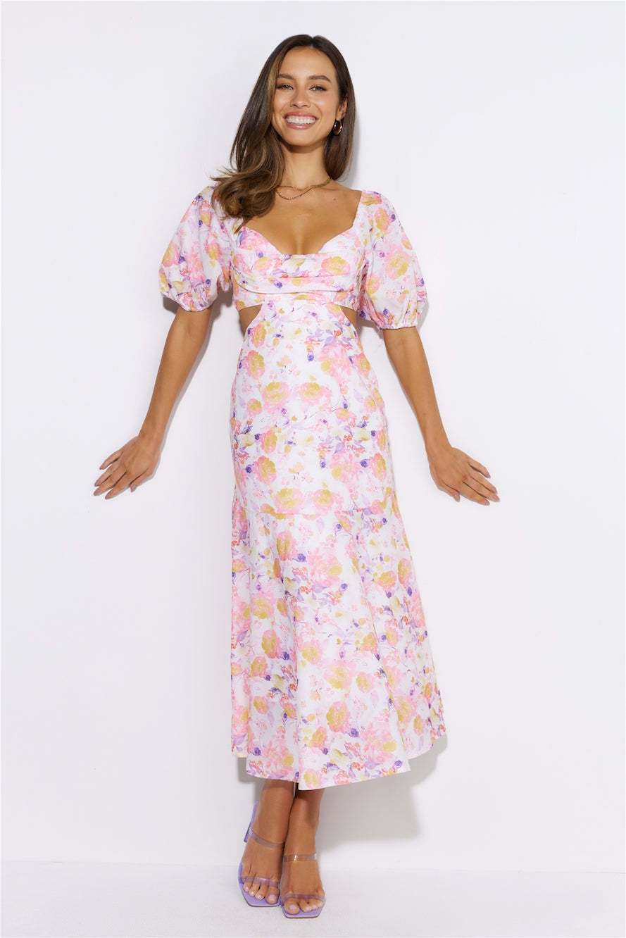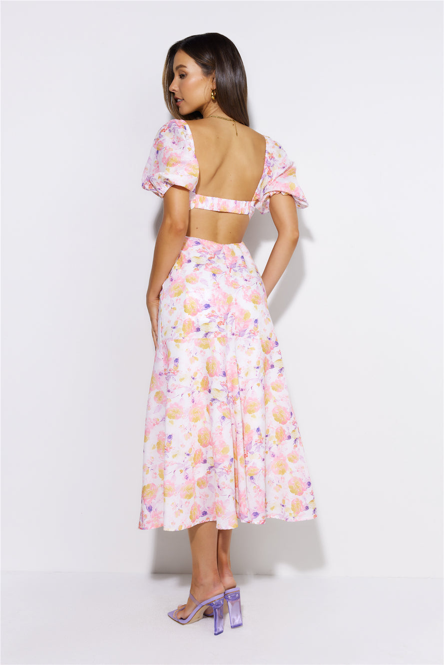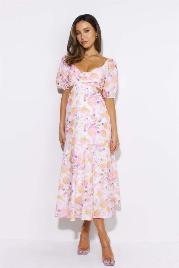 Show up looking gorgeous in the Lover Day Midi Dress. Featuring puff sleeves and a flowy skirt. Style with heels and a mini bag.