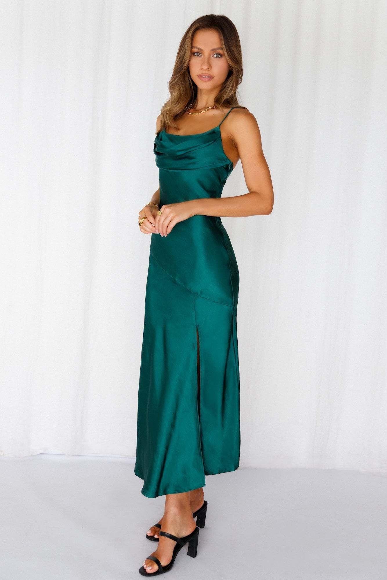 Poorly dressed? Sorry. we don't know her! Hello Molly babes like you are looking on fleek in our Lychee Martini Satin Midi Dress. Since we love this style so much. we're bringing it back in a big way and featuring it throughout this lush colour. It also features a flattering cowl neckline and a cheeky thigh vent for that touch of flirtiness you've been dying for! Style yours with black heels and a matching clutch.
