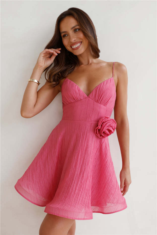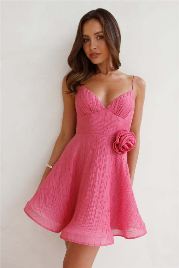 Your newest mini dress is here. lovely! The Mixed Berries Mini Dress features a flower brooch that you can remove and place anywhere on the dress and a gorgeous flowy skirt. Style with sandals for a dreamy day date 'fit.