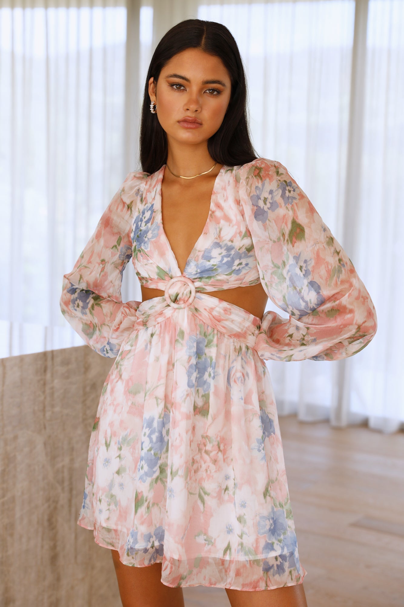 It's Now Or Never Girl. make your moves and make your mark on the world! Starting with this statement mini which features a plunging neckline. with long sleeves. a circle cut-out a tie-up neckline and an open back with a lace-up back detail. Style yours with mules and waves.