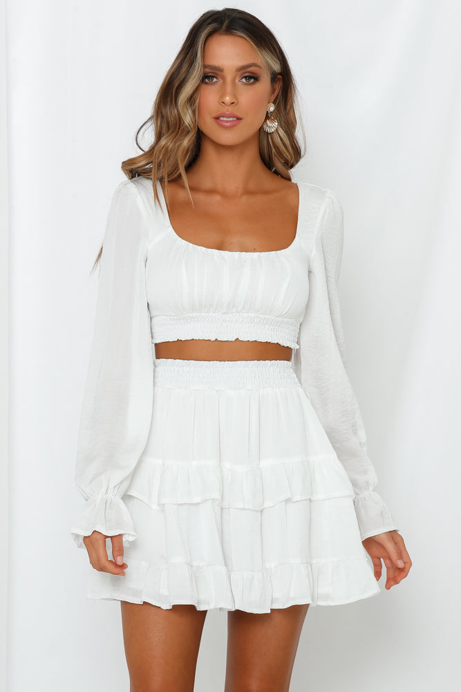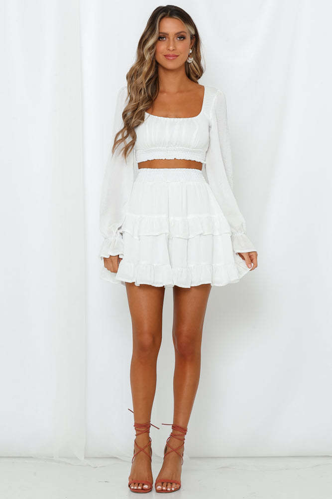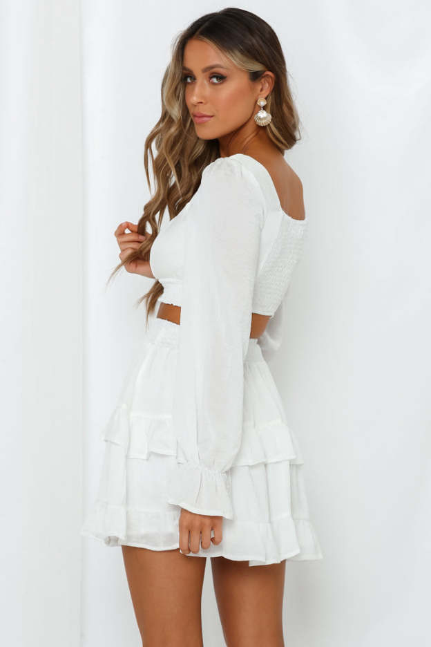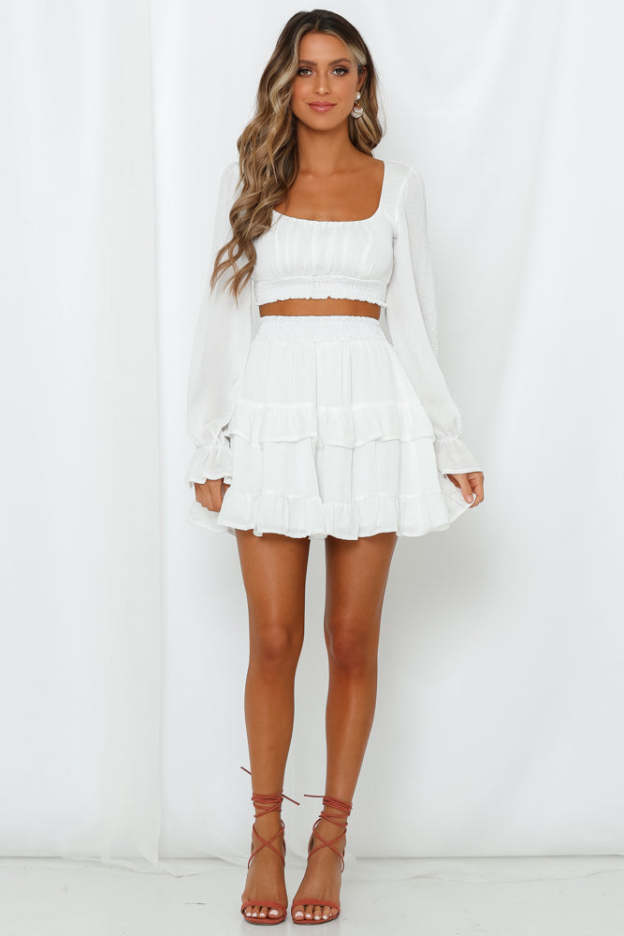 White mini skirt.