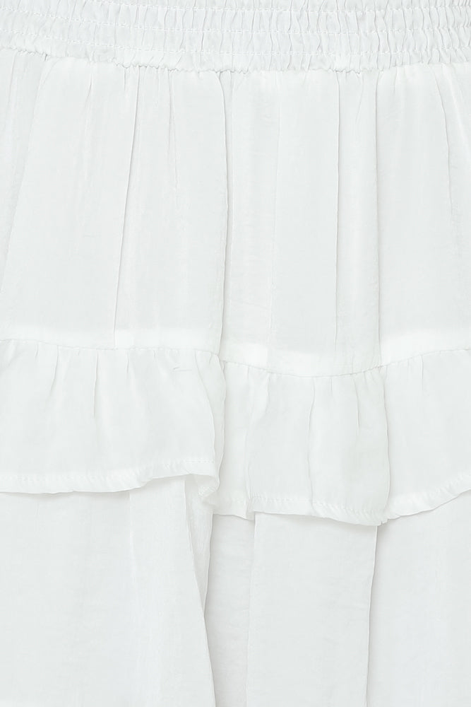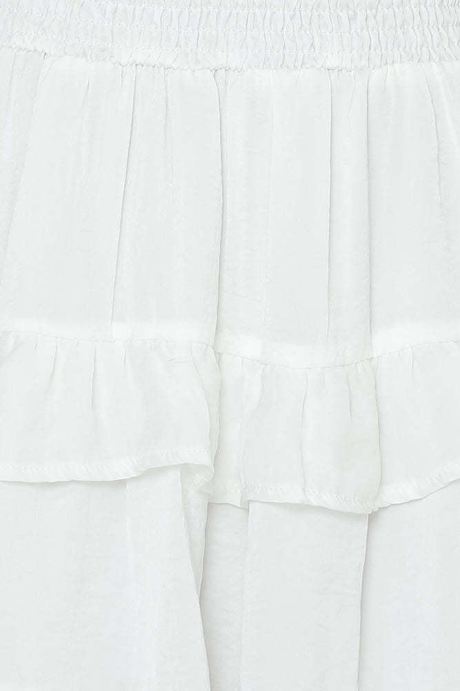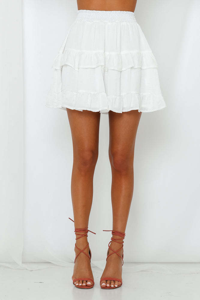 Did you say 'summer holiday'? We're getting some serious wanderlust vibes from our On Screen Skirt. Our ruffle flared mini boasts a breezy satin fabric and a comfortable shirred elastic waist for effortless dressing. Pair this skirt with its matching top. perspex block heels. and vamped up highlighter on the cheekbones!