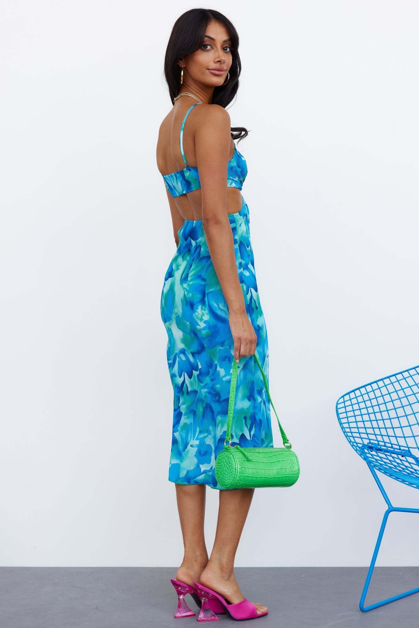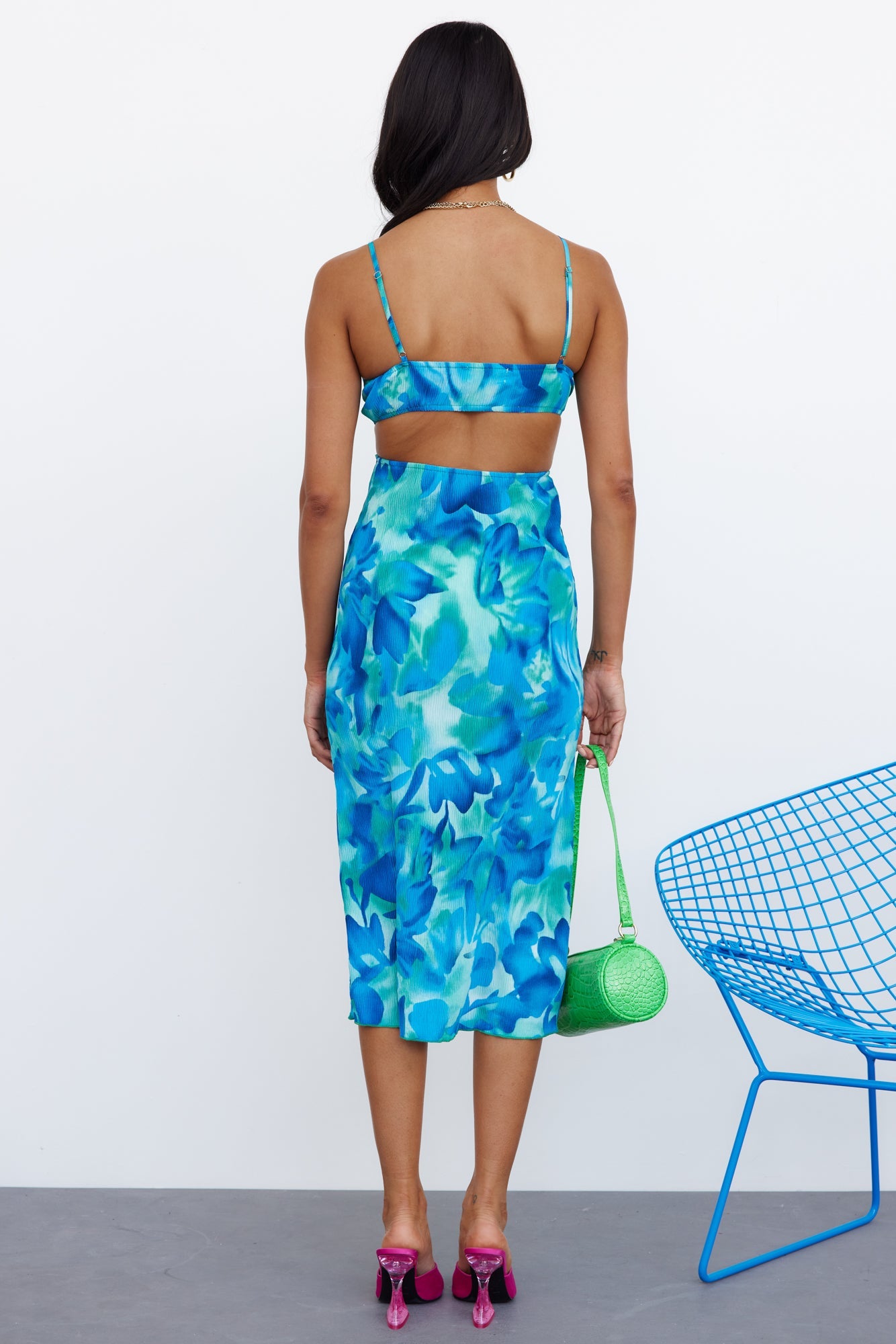 Gotta wear this midi when you wanna stand out! This FAB midi. Passionate Hymns Dress. features a sweetheart neckline with a front ring detail. a dramatic midriff cut-out and an open back with a flowy skirt. Style yours with waves and mules.