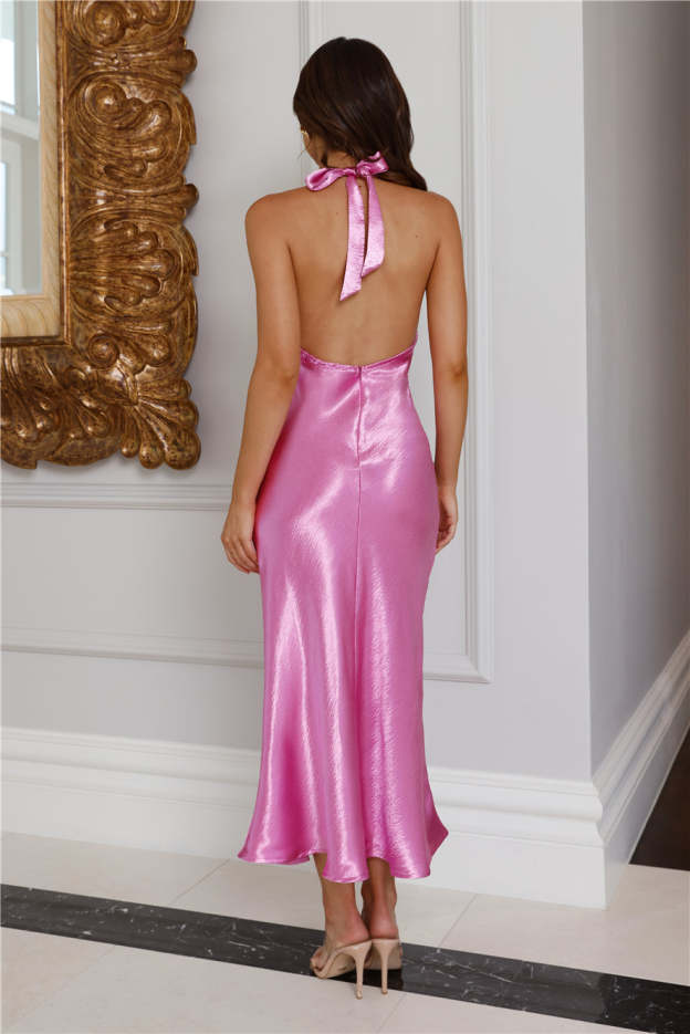 Sleekest silhouette! The Pippa Satin Halter Midi Dress features a gorgeous straight design with a halter tie and a silky finish. Style with heels for all the love.