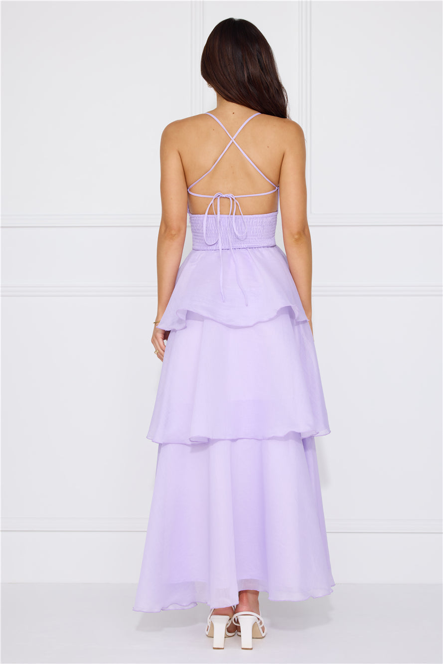 Enter the event and impress! The Playful Charm Maxi Dress features an extravagant tiered flowy skirt and a crisscross back design. Style with heels and curls for all the attention.