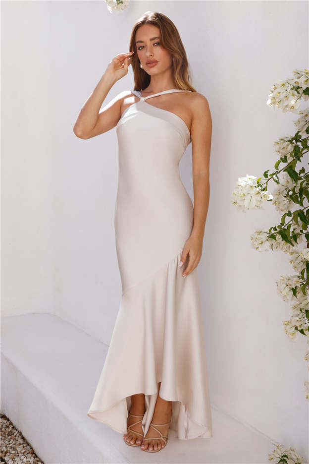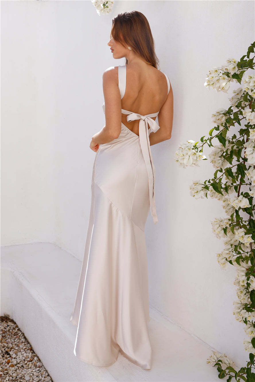 Romantic Affair Satin One Shoulder Maxi Dress Champagne