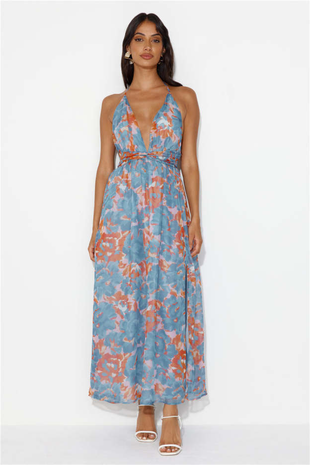 Feel free. fun and flirty in the gorgeous Rules To Follow Halter Maxi Dress. Featuring an elastic back design with a halter tie and a flowy skirt. Style with your fave sandals for a 'fit we love.