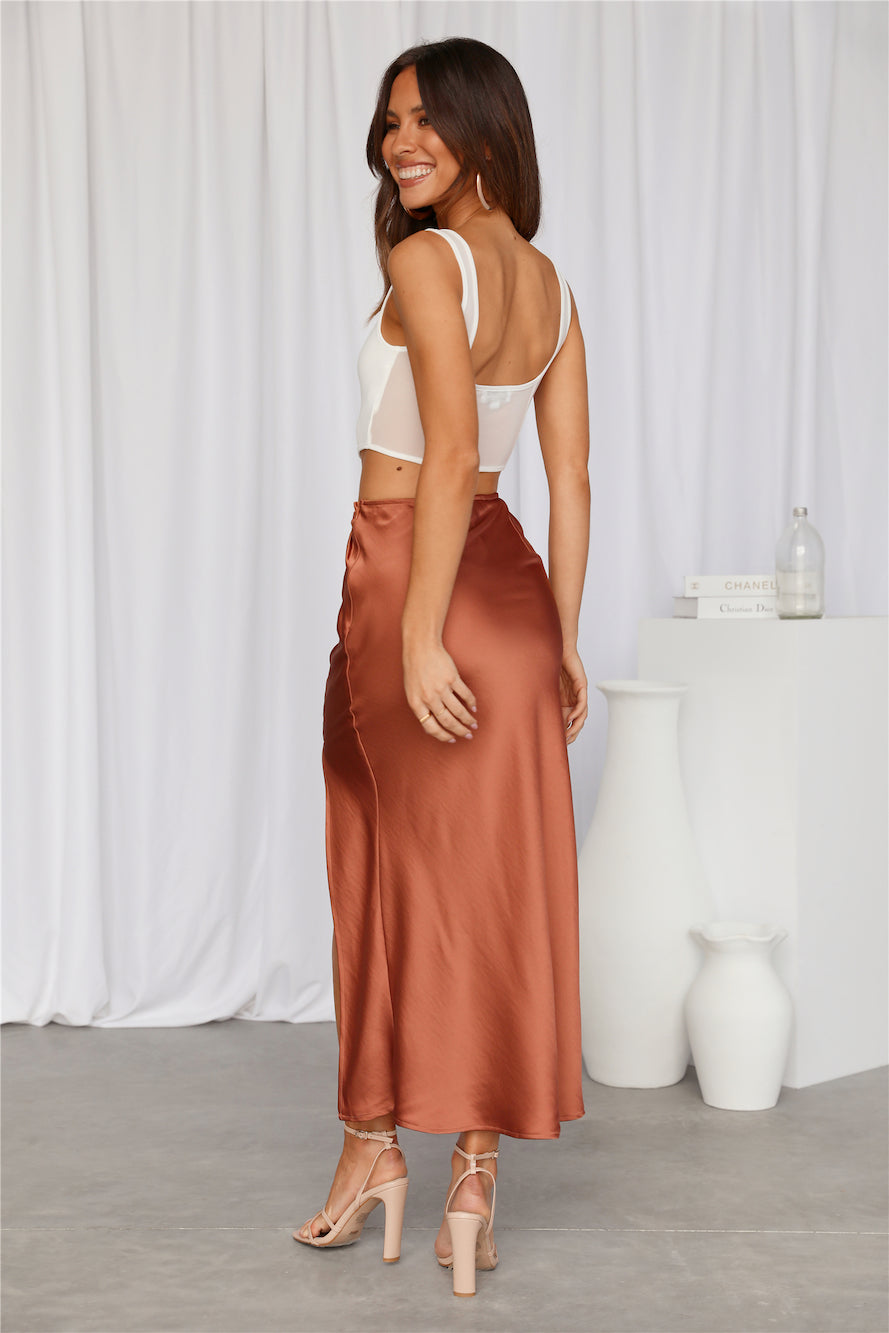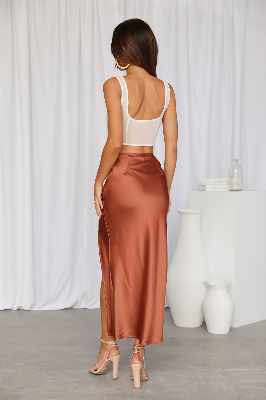 Play your fave Secret Tune and make this a night you'll never remember - you get what we mean girl. And the best way to get ready for this killer night is with this silky maxi skirt. Featuring a ring detail at the waistline and a side slit. Style yours with a crop and waves.