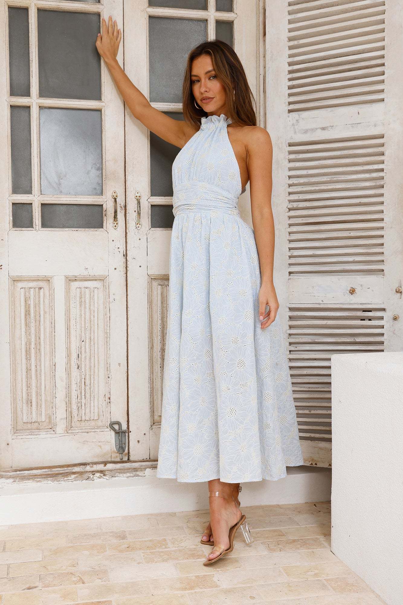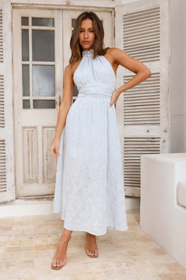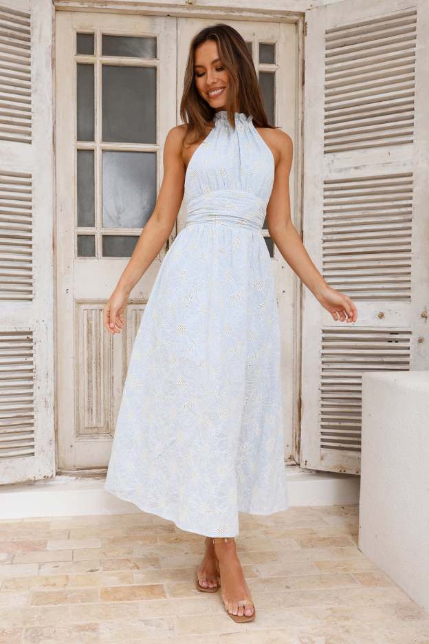 You'll own any room you step into with the Sky High Hills Halter Maxi Dress. Featuring a gorgeous flowy skirt. an embroidered design and a halterneck tie-up. Style with heels and impress!