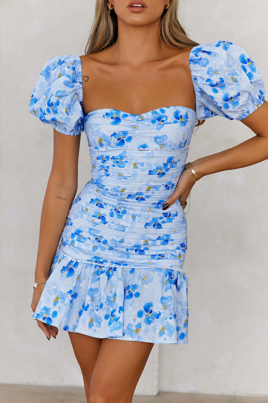 - Blue floral mini dress.