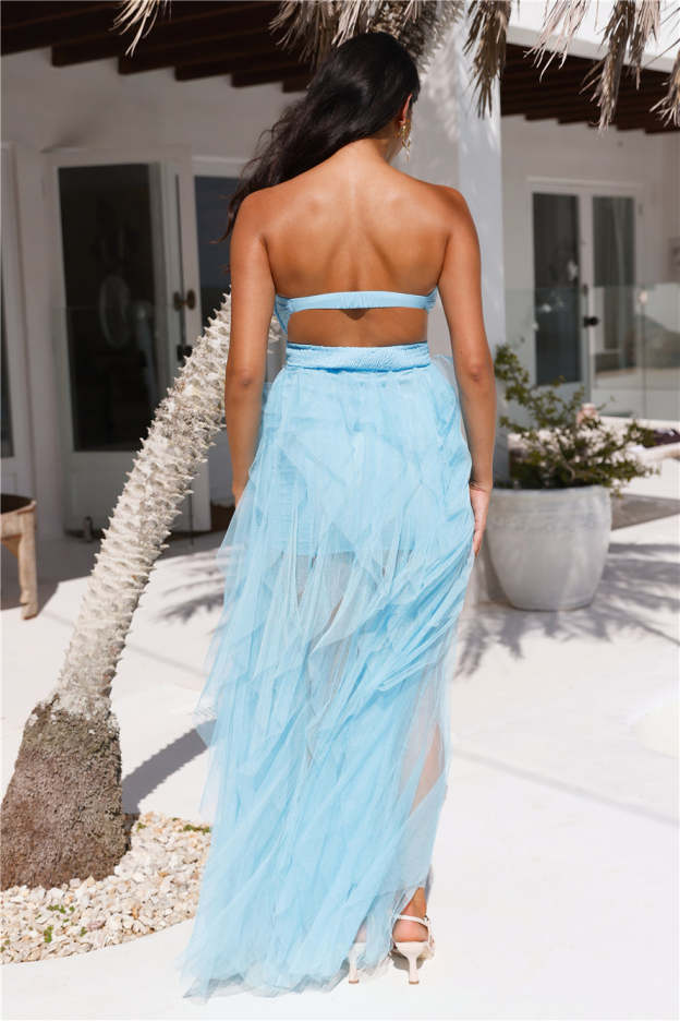 Statement Choice Strapless Tulle Maxi Dress Blue