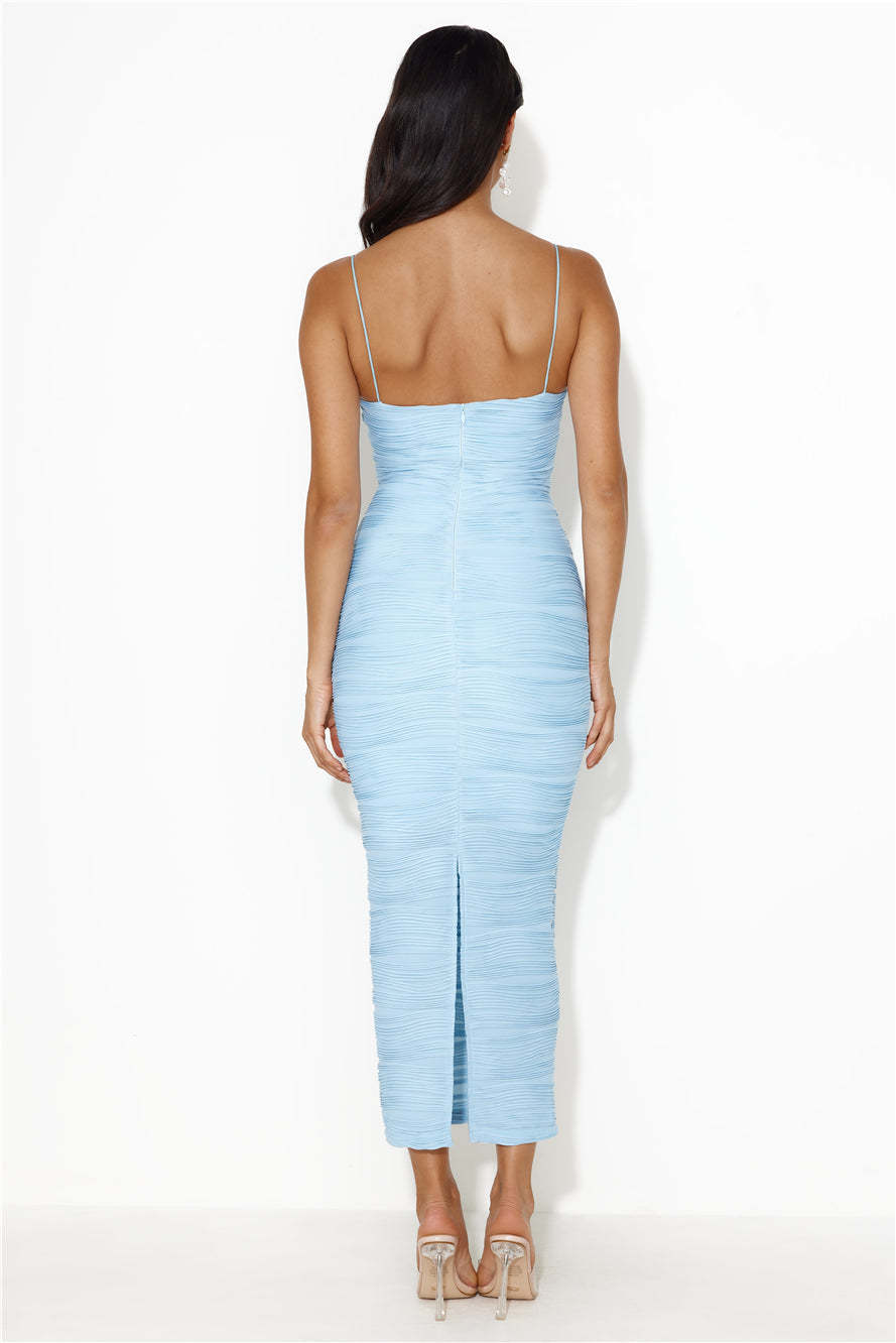 Level up your look with the Summer Cloud Midi Dress. Featuring a textured design and cutouts to the front. Style with heels and curls for all the likes.