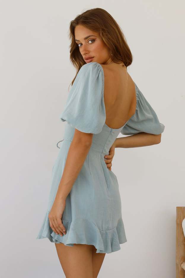 Grab the wide brim hats. and the cutest sunnies - it's time to revert back to your Sun Lovin attitude. Ease into summer with this mini. Featuring short puffy sleeves. with a tie-up detail at the front + three cutouts and a flowy skirt. Style yours with mules and waves.