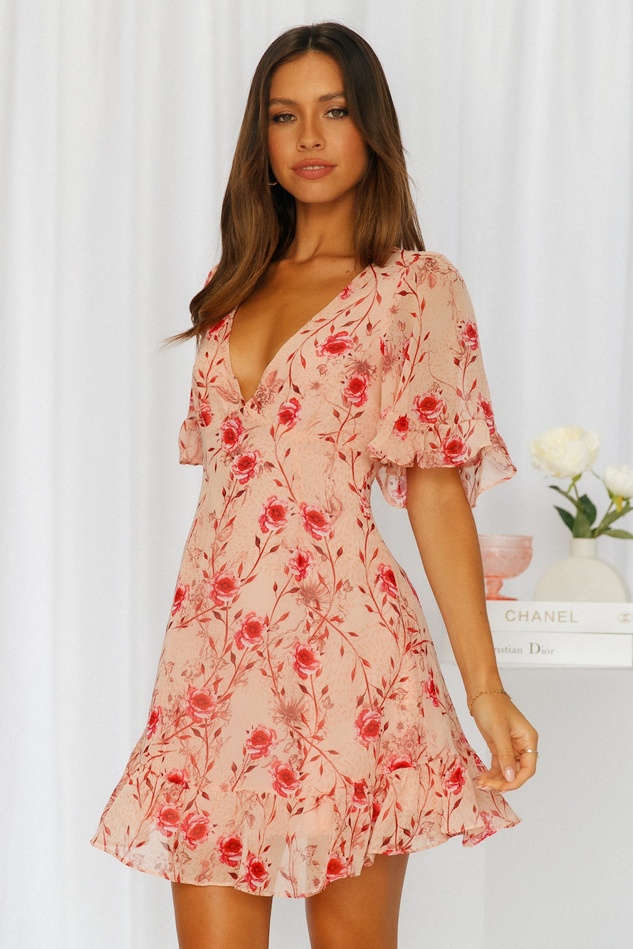 Be the cutest at brunch with the Sweetest Tea Dress. This adorable mini dress has drapey cap sleeves. a low neckline with an open back. and a flared-out bottom. Style yours with a cute high bun and sandals.