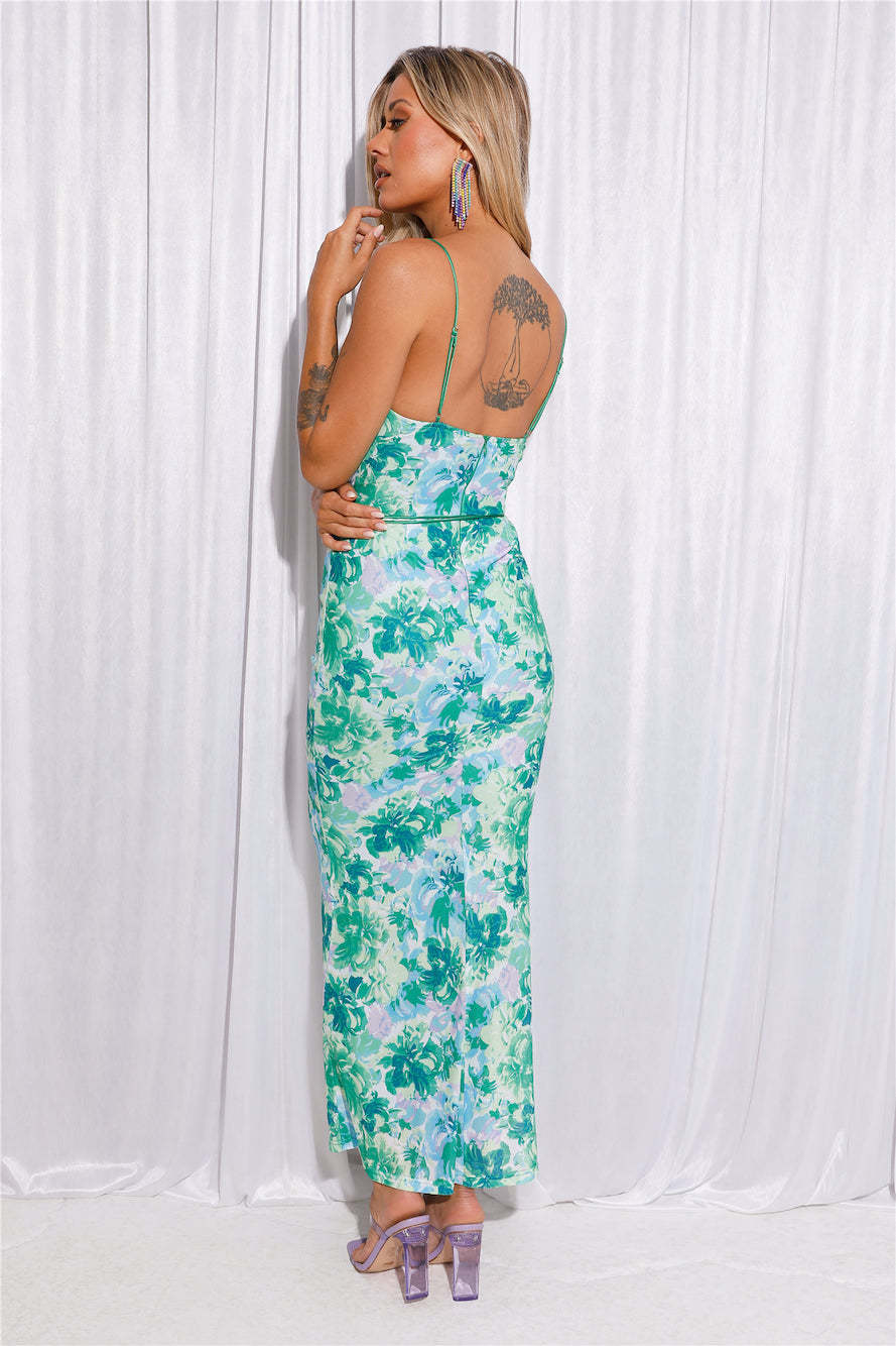 Most loved look right now. girl. The Sweetest Things Maxi Dress features a tie-up design and a cowl neckline. Style with heels and curls for a look we love.