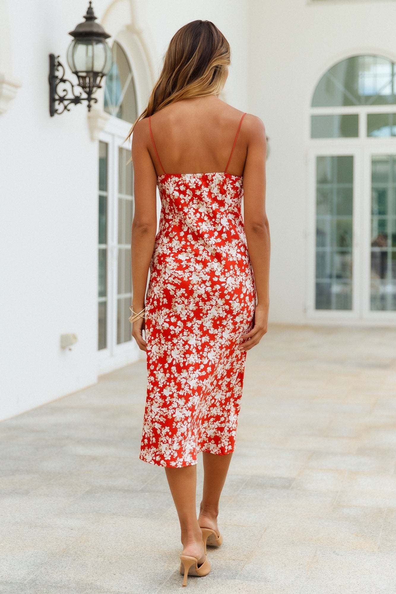 Undeniably chic are the words to describe the Top Of The Charts Midi Dress. A simple. yet oh so elegant dress featuring a minimalistic satin slip silhouette. side slit. and a stunning print. We like to style ours with nude mules and a glowing tan!
