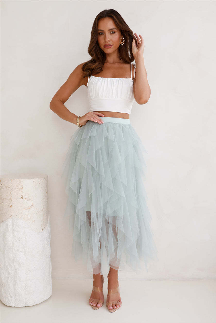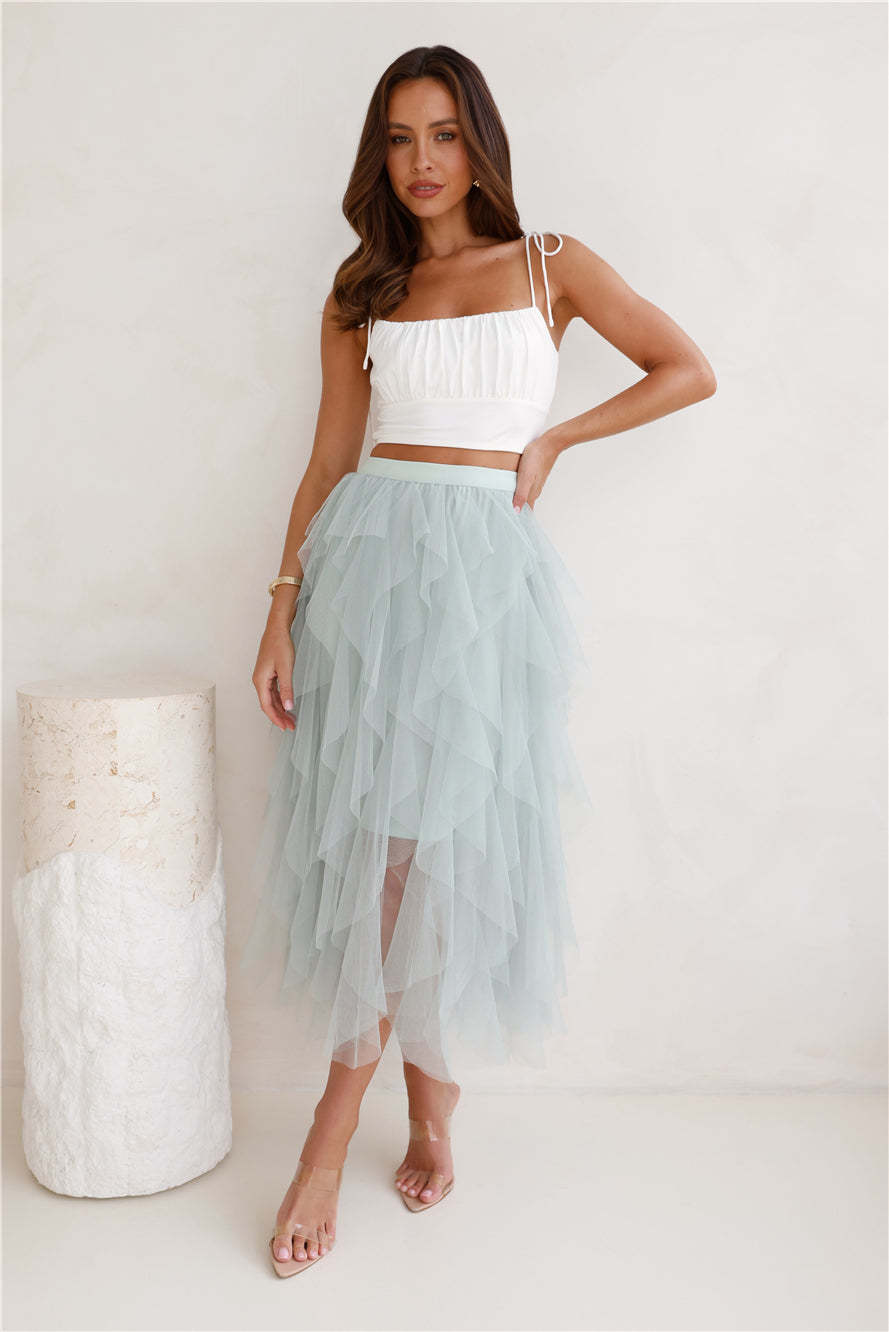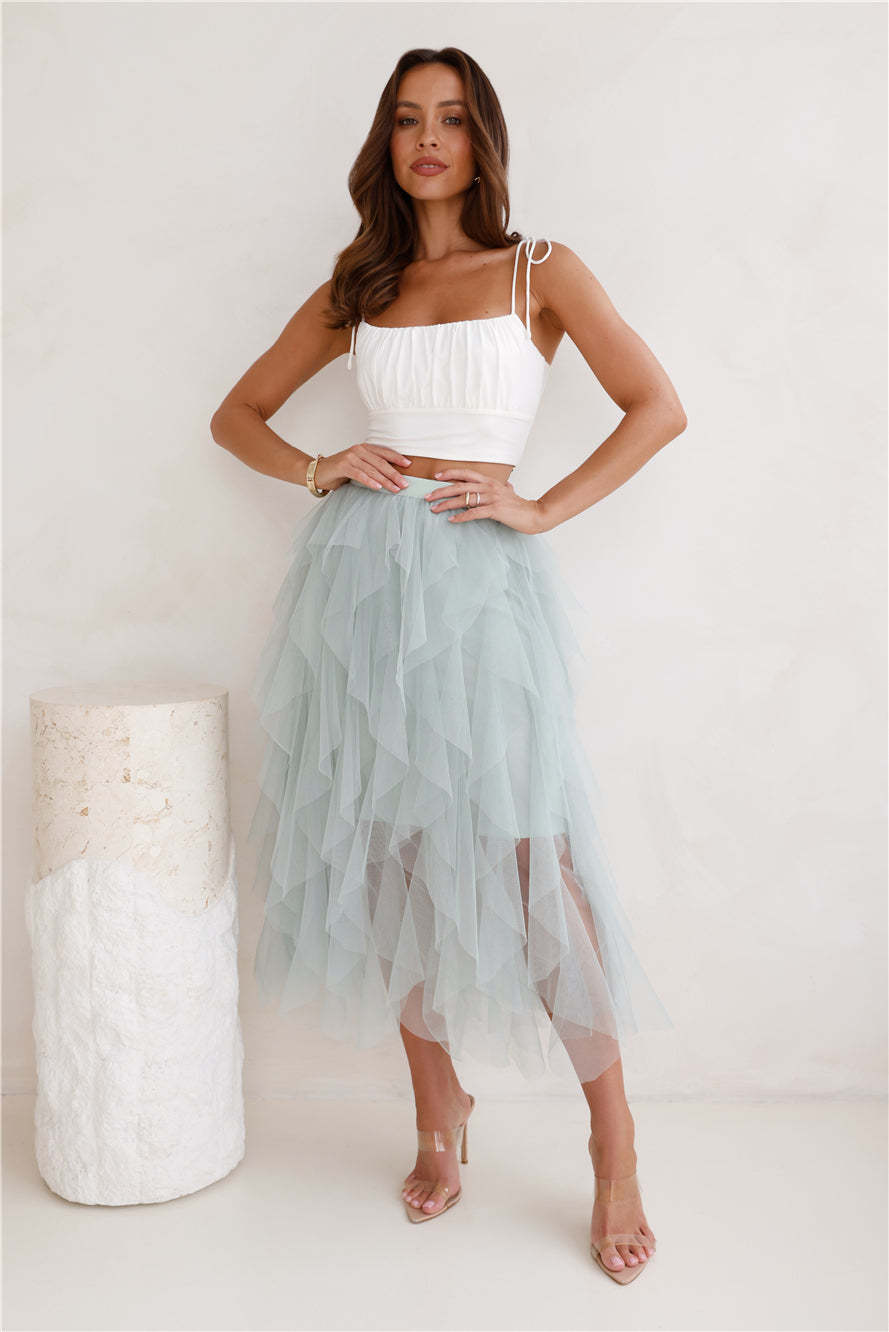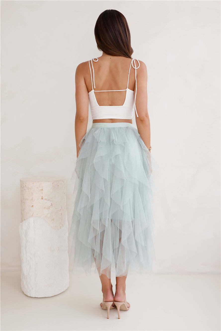 Twirl This Way Tulle Midi Skirt Sage
