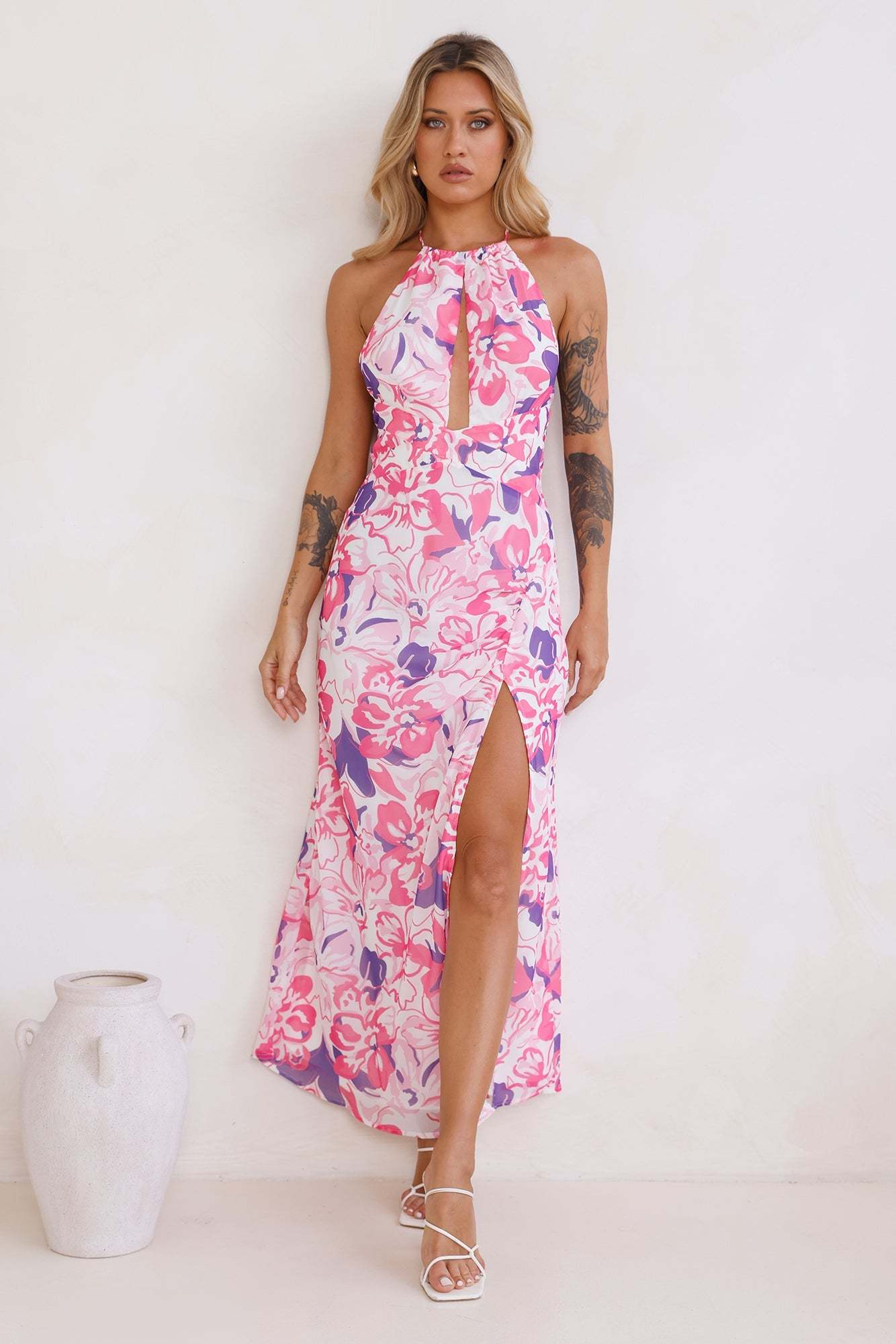 Refresh your wardrobe with the Way to Go Halter Neck Maxi Dress. Featuring a halter neck tie-up and a flowy skirt. Style with heels and curls for all the attention.