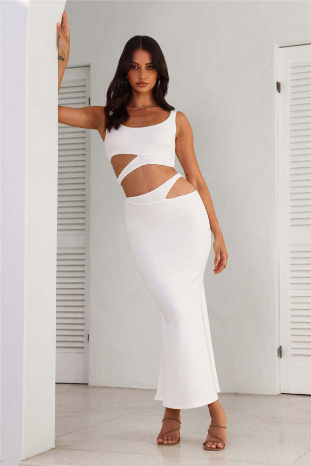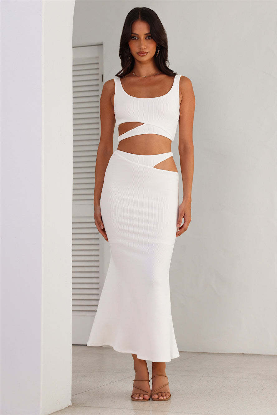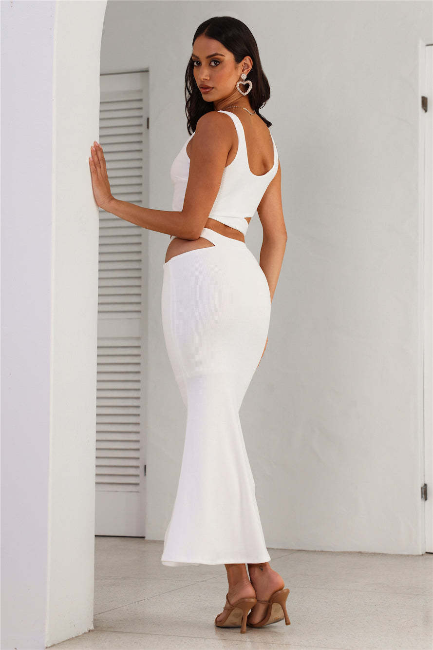 Where Did You Go Ribbed Maxi Skirt White