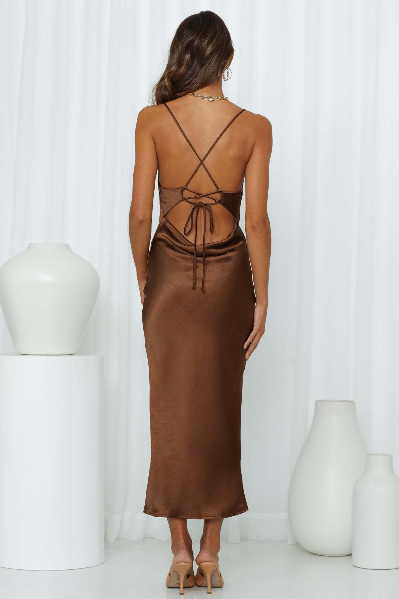 - Coffee midi dress.