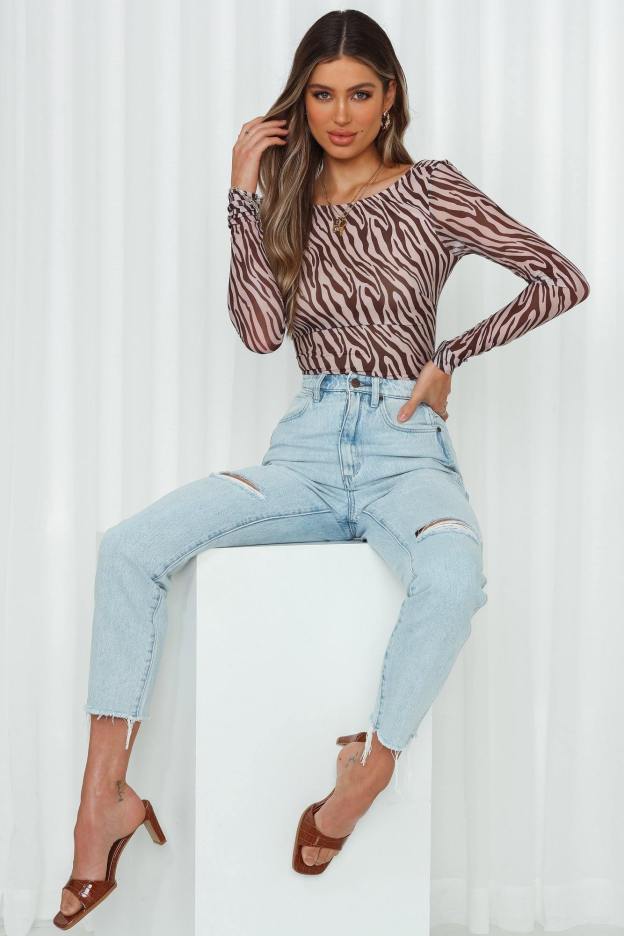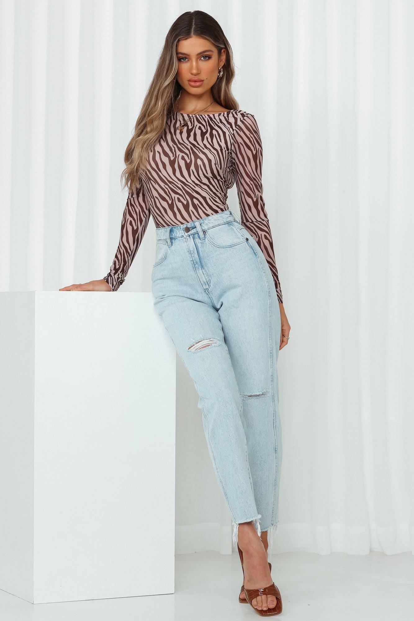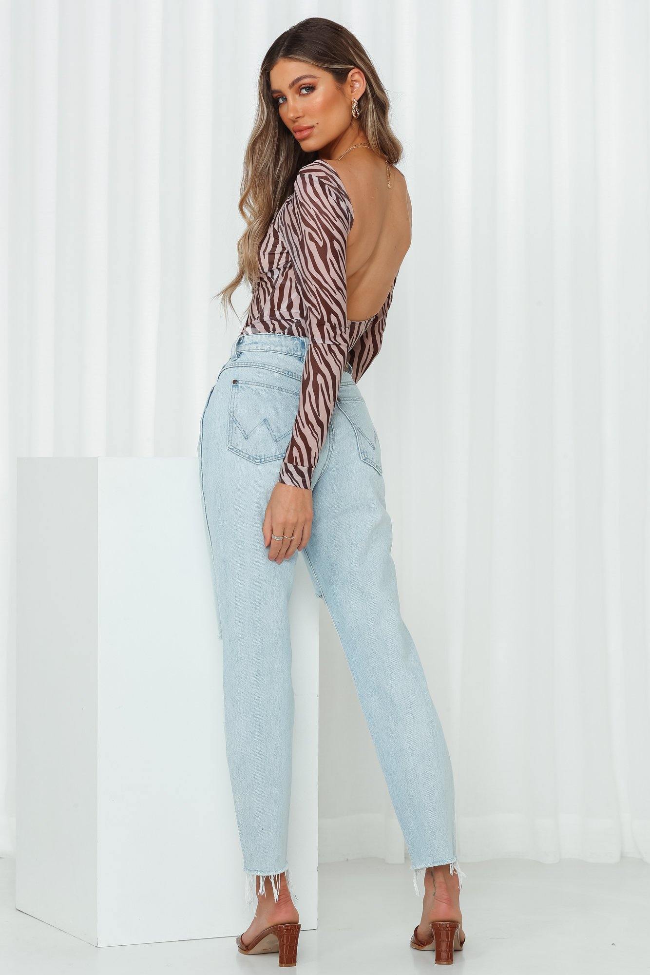 Designed to cater to all corners of your casual edit. Wrangler's Drew Jeans are the perfect essential to step up your transeasonal edit. Made with durable BCI cotton. the medium wash denim jeans feature a cropped mom-style fit. feature a high-waist with belt-loops and distressed detailing to the knee and leg cuffs. We've styled it with an animal print bodysuit and mules!