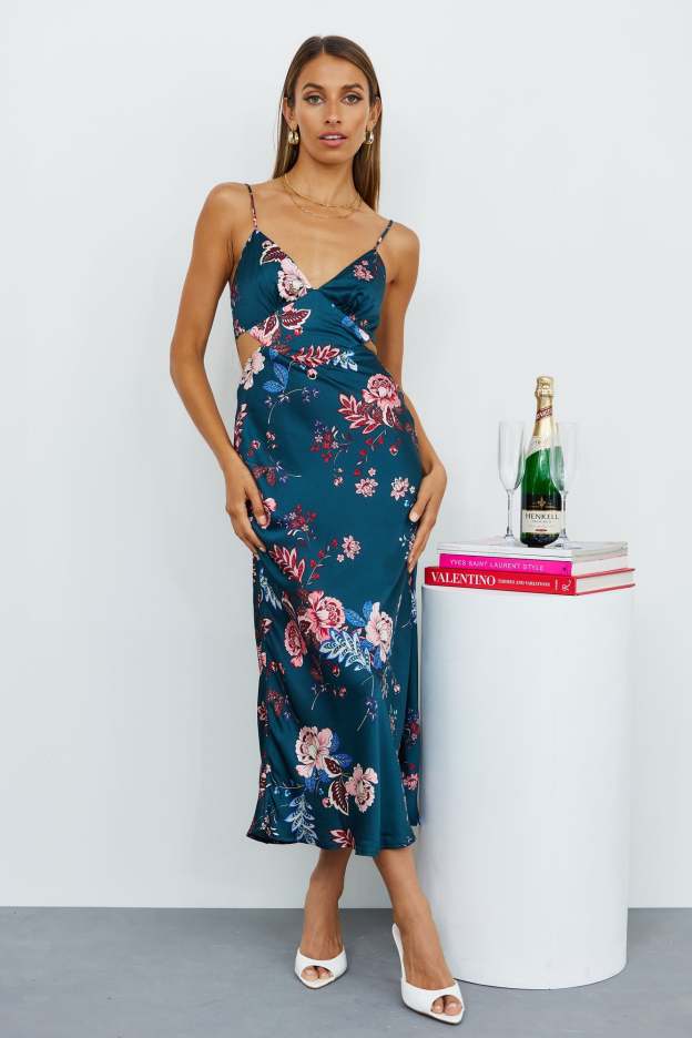 Slay even harder on Your Windy Days. 'cause no matter the weather you're the main character. This cute midi dress has a lace-up back. with a sweetheart neckline. a cut-out below the bust and of course. the fabric speaks for itself. Style yours with gold accessories and a lot of confidence.
